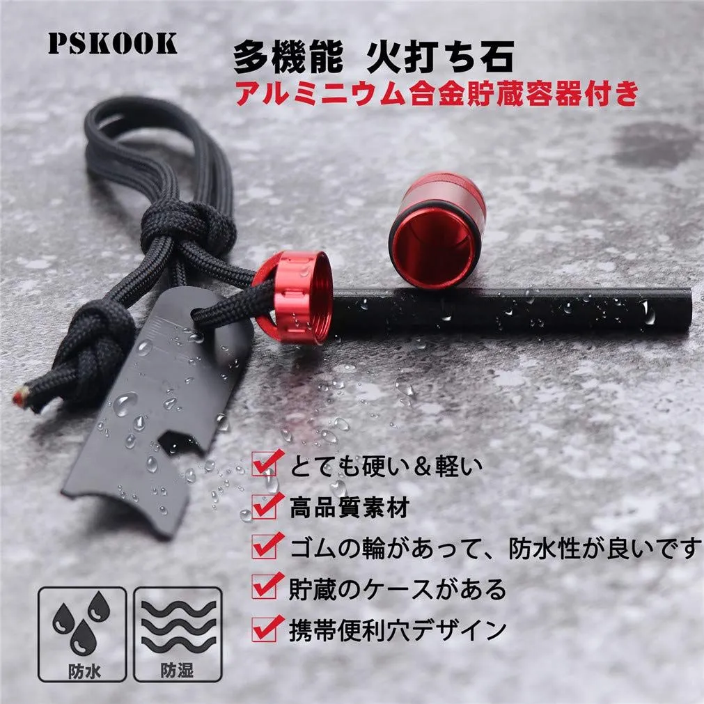 PSKOOK 火打ち石 キャンプ 火吹き棒 火打ち石セット メタルマッチ マグネシウム棒 火起こし ファイヤースターター 着火具 着火剤付き BBQ キャンプ バーベキュー用 緊急災害などに対応