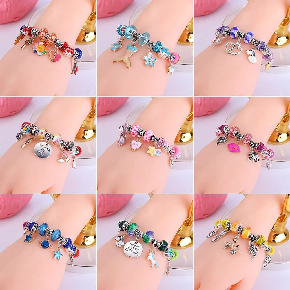 AIPRIDYチャームブレスレット製作キット、女の子DIY工芸品、ユニコーンマーメイド工芸品ギフトキット、6-12歳の女の子に適した工芸品 (150 つぶ)