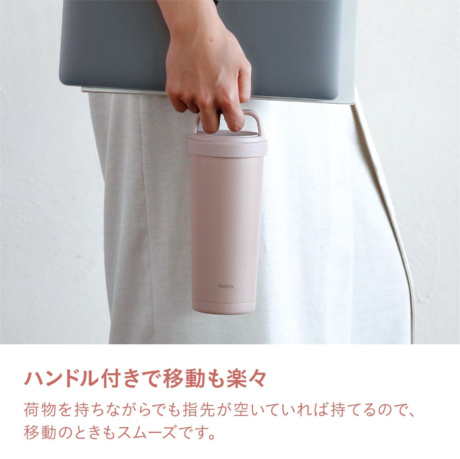 ボトルのように持ち運べてタンブラーのように気軽に使える「holms(ホルムス) ハンドル付きタンブラー」I'm a Tumbler? I'm a Bottle?