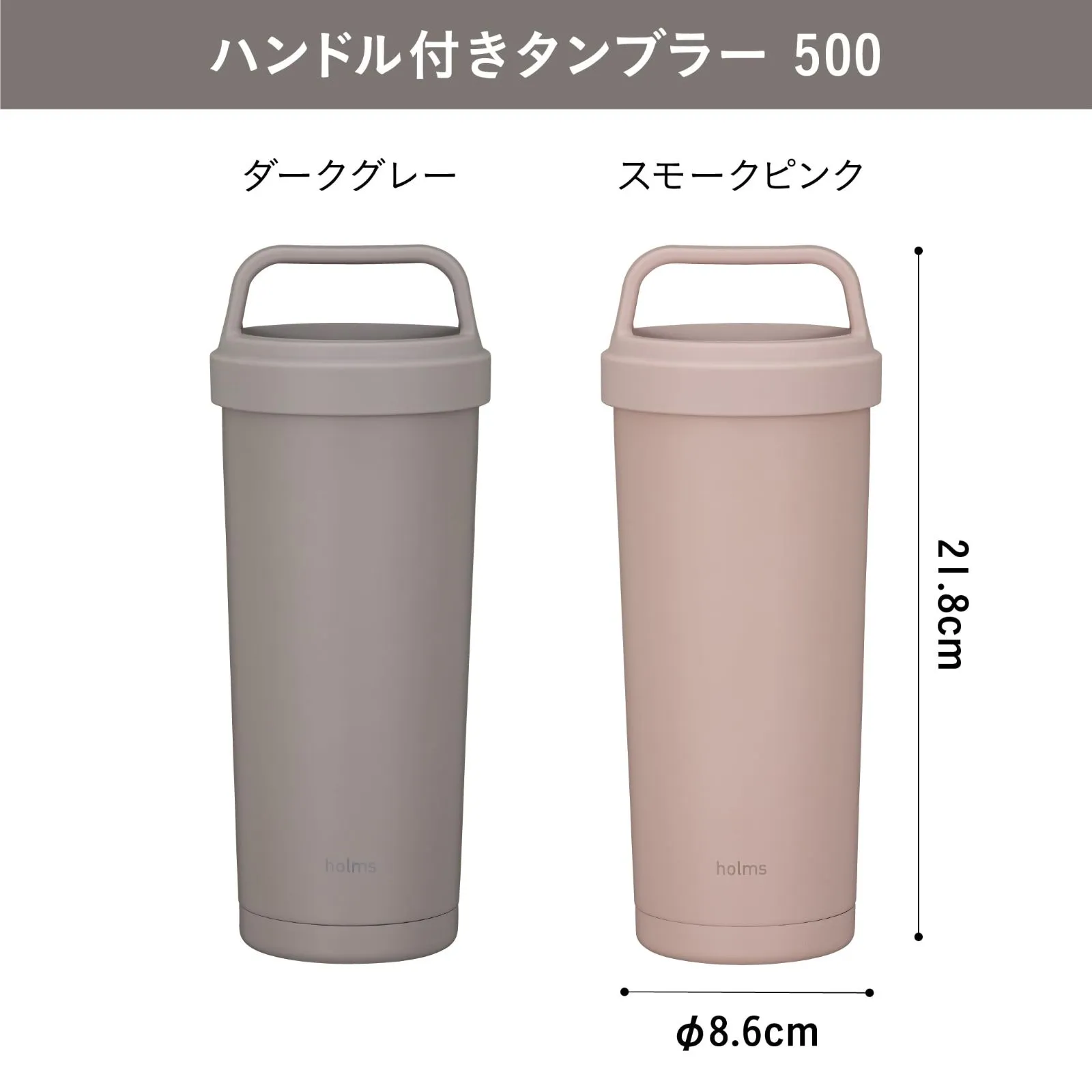 [食洗機対応] スモークピンク ハンドル付き 500ml 真空断熱 タンブラー 2層構造 水筒 ハンドル付きタンブラー500 シービージャパン holms