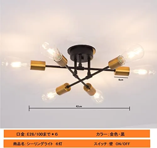 【新品】ペンダントライト アンティーク レトロ モダン おしゃれ 北欧風 シーリングライト 6灯 照明器具 ゴールド・黒 ダイニング 食卓用 リビング 居間用 寝室 LED対応 6畳 8畳 E26(電球別売り)工事不要 引掛け式 明るい 大き 290c5ce1