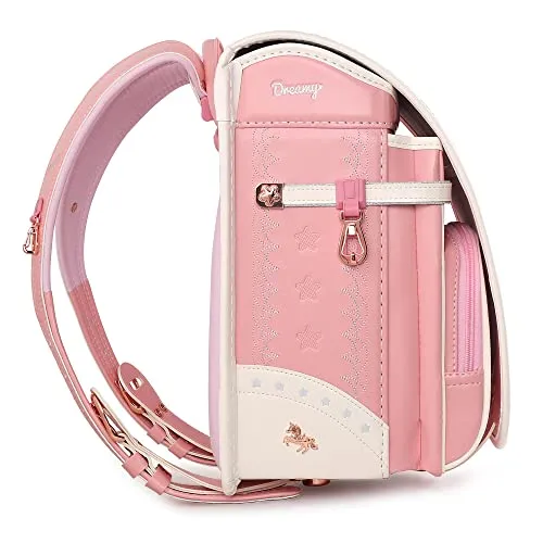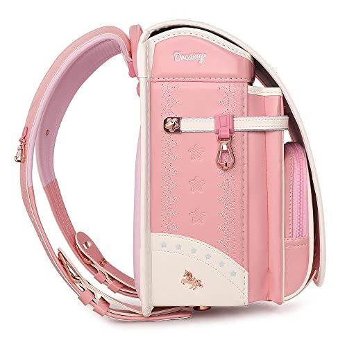 【2026向け】最新女の子向けランドセル、ユニコーンモデル、ローズゴールド系金具、7色展開(桜色/ミントグリーン/水色/紫色/ピンク/月白/千草色)。もっと細部にこだわり可愛いと豪華な気分!ツヤありパール生地使用、波状らしいラメ入り刺繍付き、星型エンボス加工、ユニコーンのパーツで豪華感たっぶり。