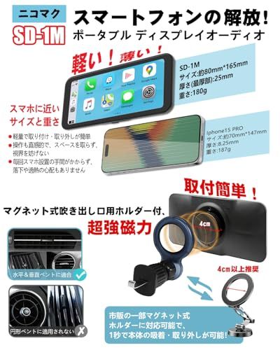 【新品】【超軽量+取付簡単】ポータブル ディスプレイオーディオ Carplay スマートディスプレイ カーナビ SD-1M エアコン吹き出し口ホルダー付 Android Auto対応 高速接続 車載モニター タッチスクリーン AirPlay/ 7d9d6e22