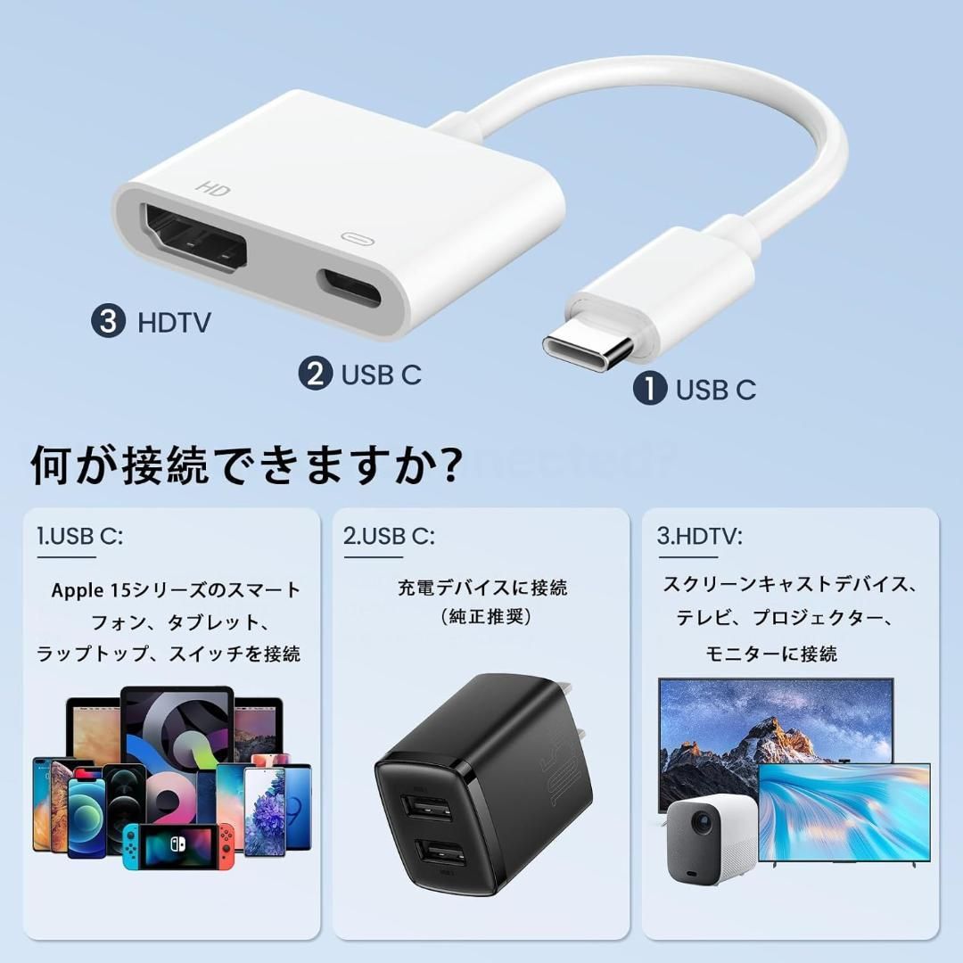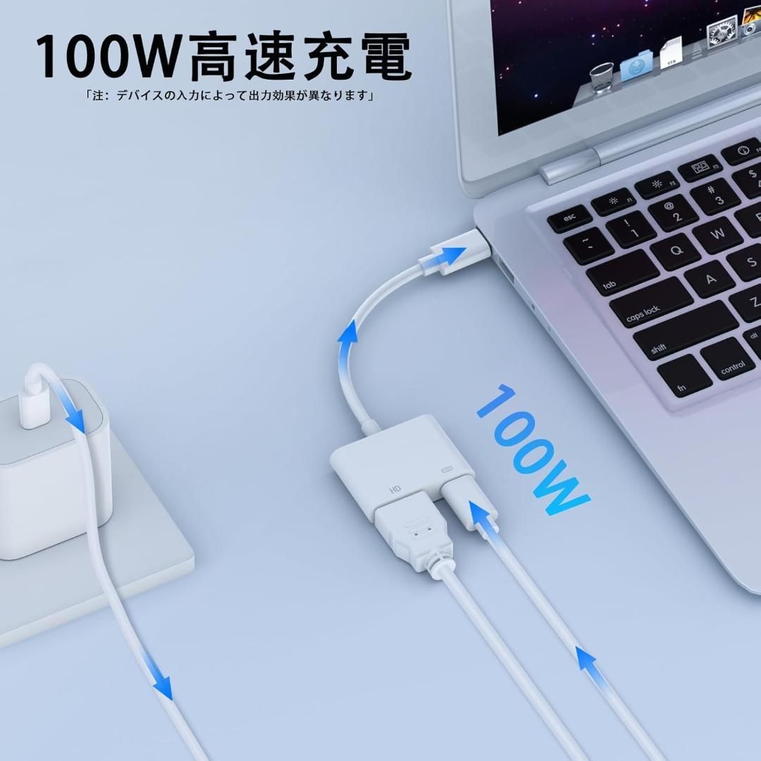【2in1 Typec HDMIアダプター、4K高画質と100W急速充電】スマホの画面を大画面に映し出し、さらに充電も同時に!Type C Digital AVアダプターは、優れたICチップを搭載しており、安定したデータ転送を実現。接続するだけで、4K UHDの高画質動画を楽しめます。また、100W急速充電により、電池切れの心配なく映画やゲームを長時間楽しめます。自分用にも、友人や家族へのプレゼントにも最適です。