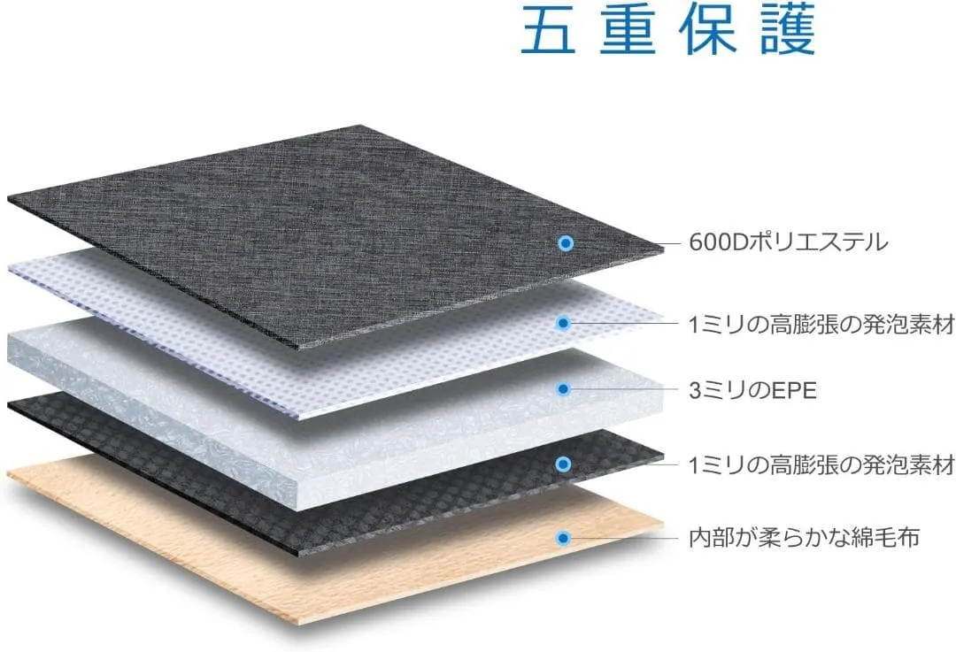 軽量で保護力、撥水性に優れた丈夫なポリエステル素材を使用して、傷や衝撃から保護しながら持ち運びやすいです。
