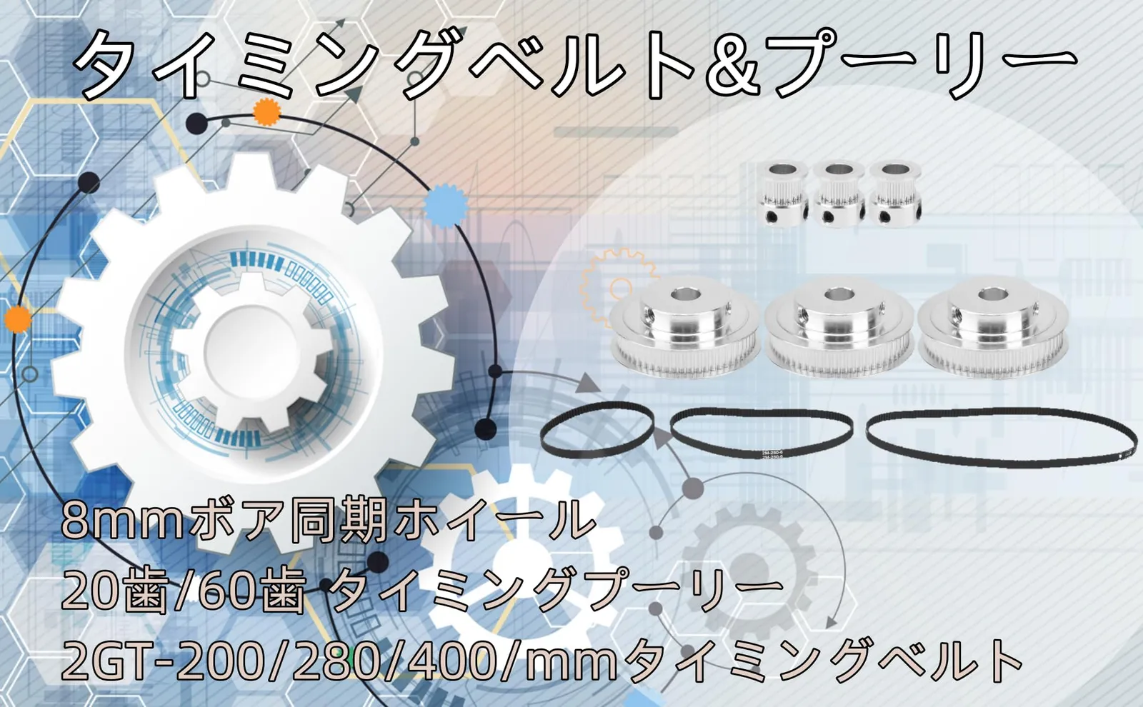 新品 Walfront ベルトプーリー タイミングベルト 3Dプリンター対応 高精度 8mmボア同期ホイール 20歯 60歯 多歯数対応 2GTタイミングベルト 200 280 400mm 長さ選べる 3Dプリンター部品 工業用機械 製造現場向け