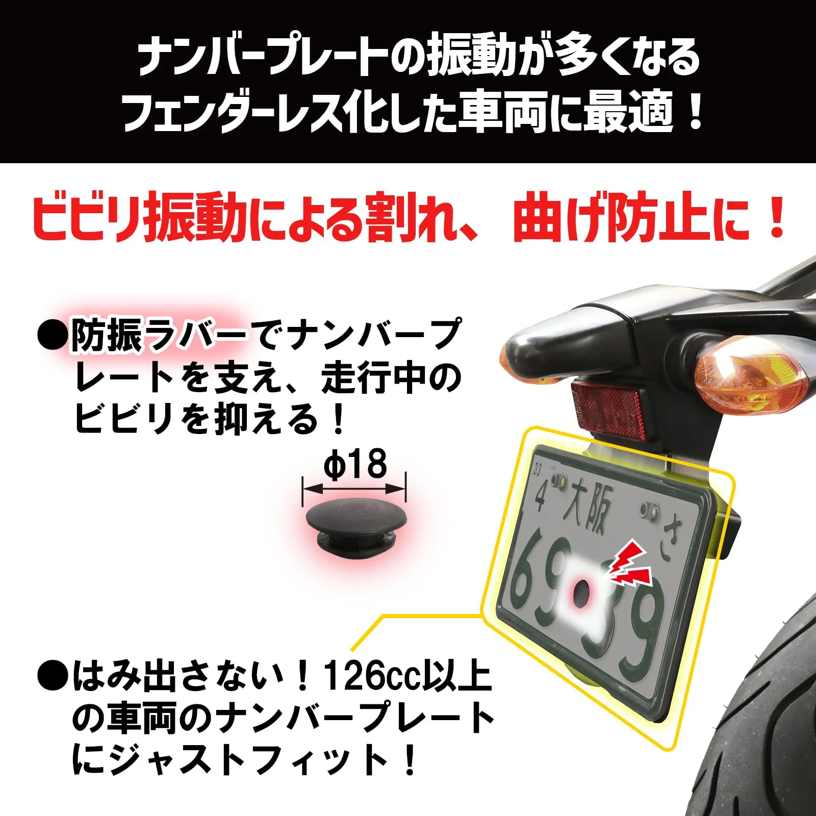 ■適合車種 汎用(軽二輪用) 126cc以上のナンバープレートに適合
