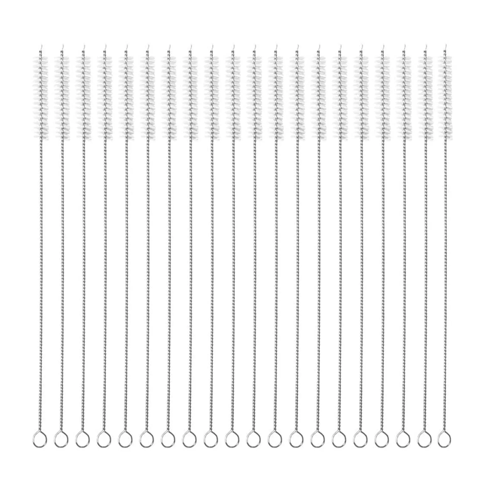 新品 DFsucces ストローブラシ 哺乳瓶ブラシ 極細ナイロン ステンレス製 細いストローの中まで洗えて衛生的 (200mm-20本セット)