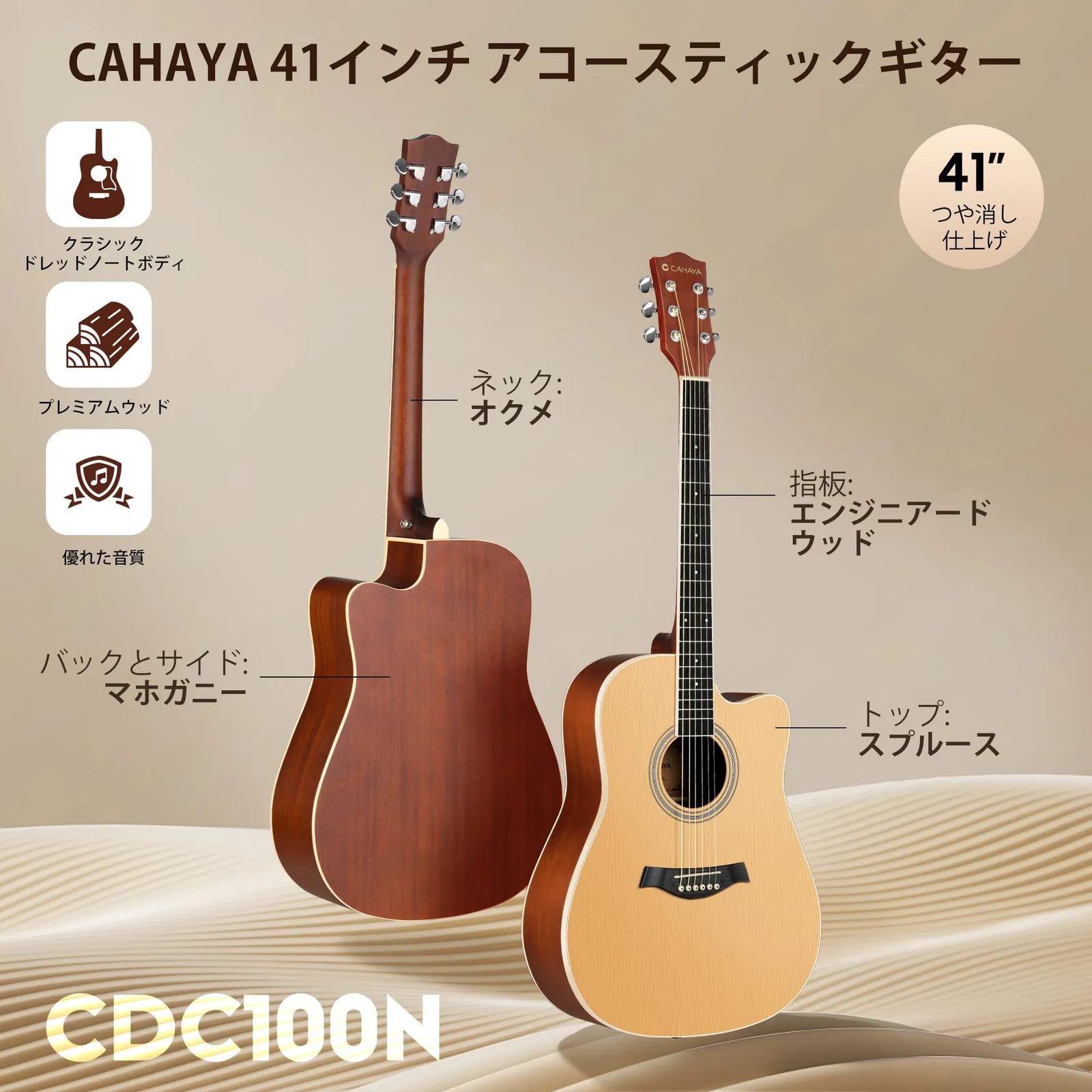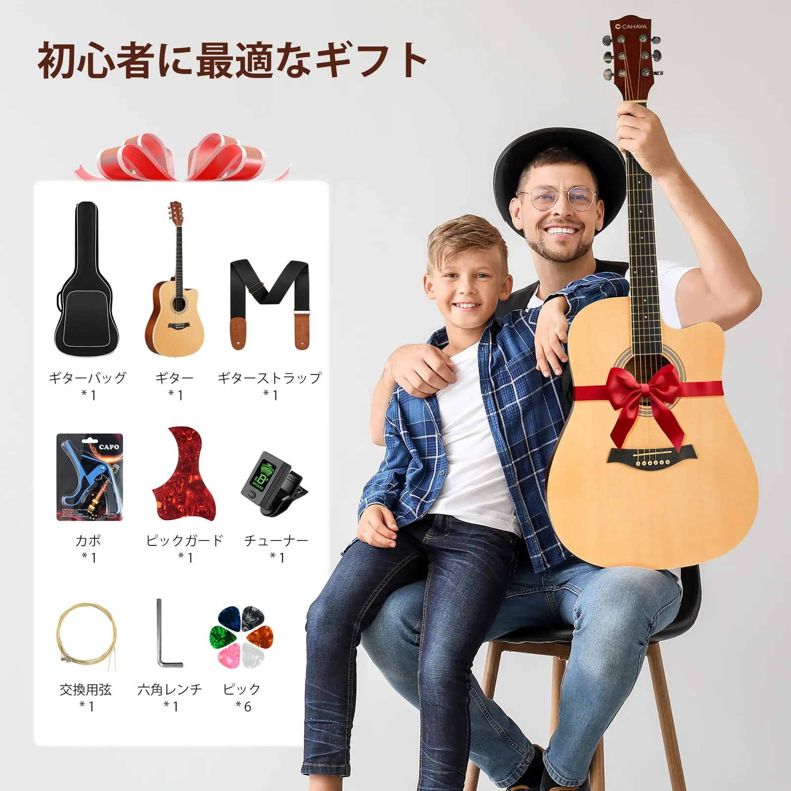 新品 CAHAYA アコースティックギター 初心者セット 41インチ アコギ 木製 スプルース材 8点付属品 ギグバッグ/ピック/替え弦/ストラップ付 大人 子供用 練習用 ナチュラル