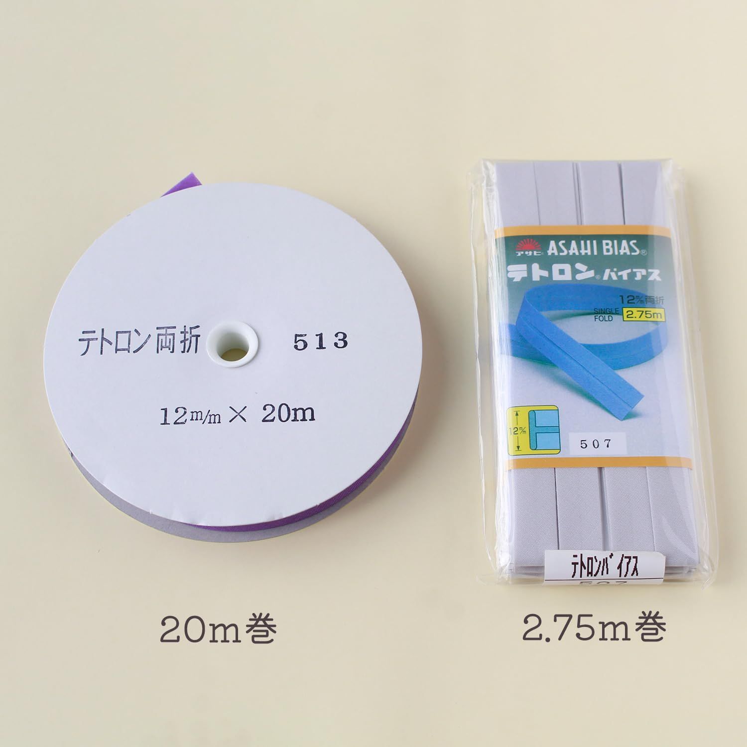 新品 アサヒ バイアステープ テトロンバイアス 両折 12mm巾×20m巻 レモン Col.534