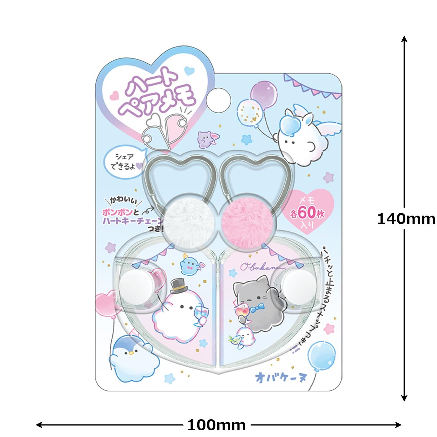 おまたせしました!大人気オバケーヌの新トータルが発売です!ダンスパーティモチーフのかわいいステーショナリーです!かわいいボンボンとハートキーチェーン付き!好きなところに付けられるよ!