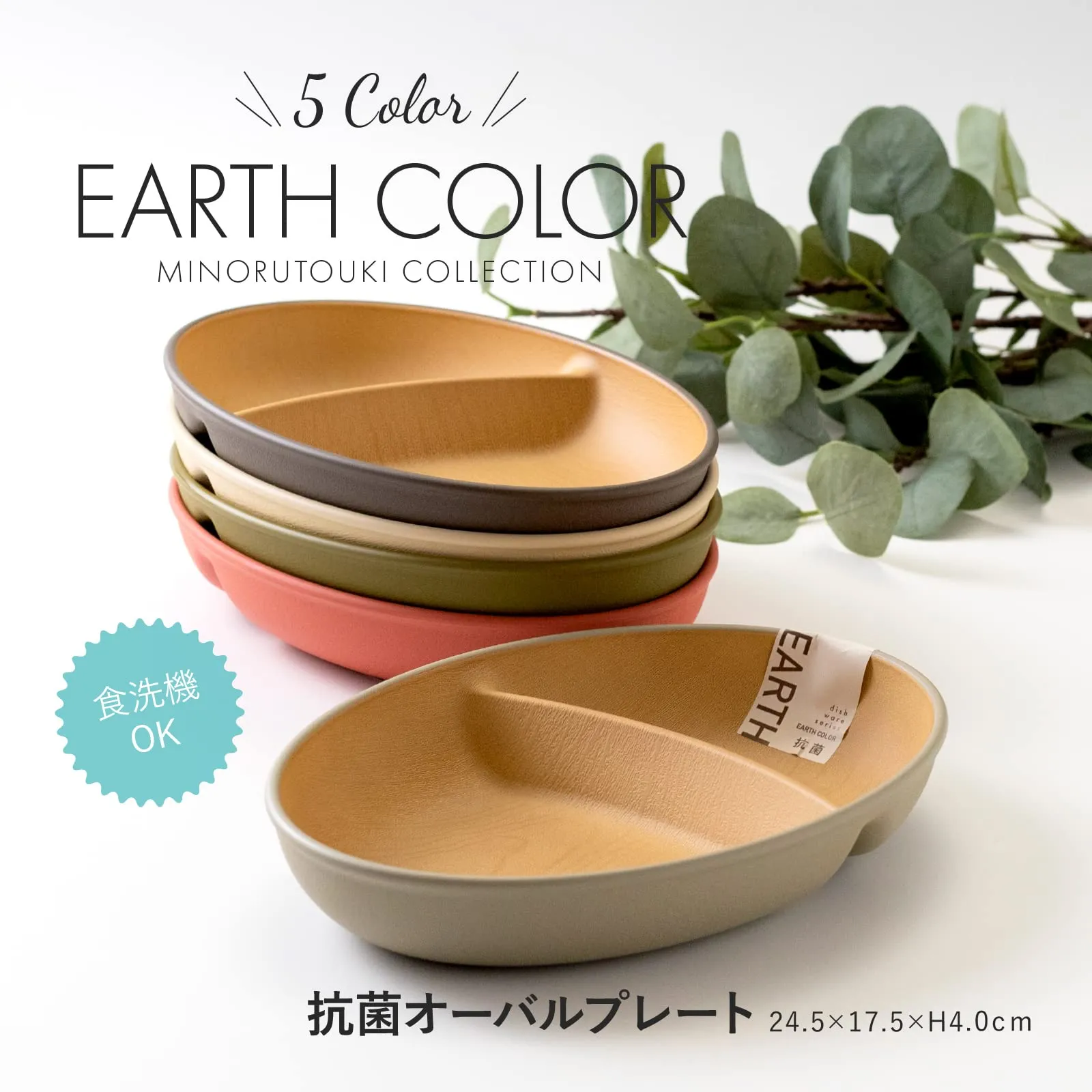 新品 カノー earth color(アースカラー) 抗菌オーバルプレート アイボリー