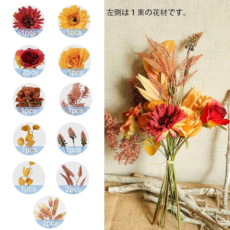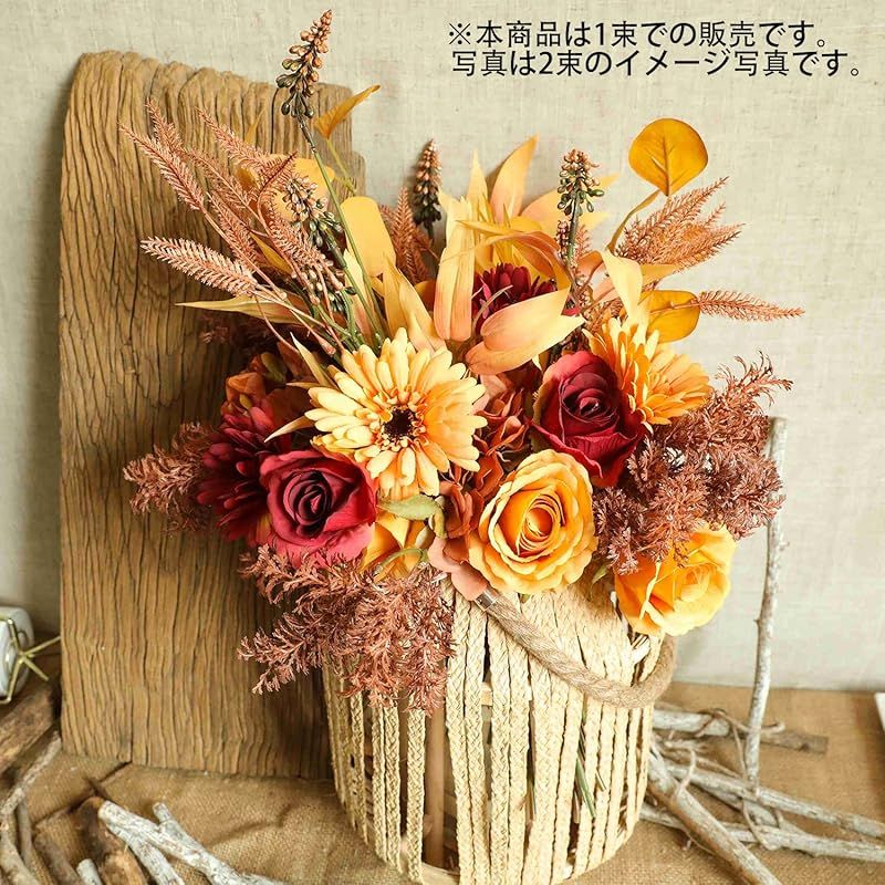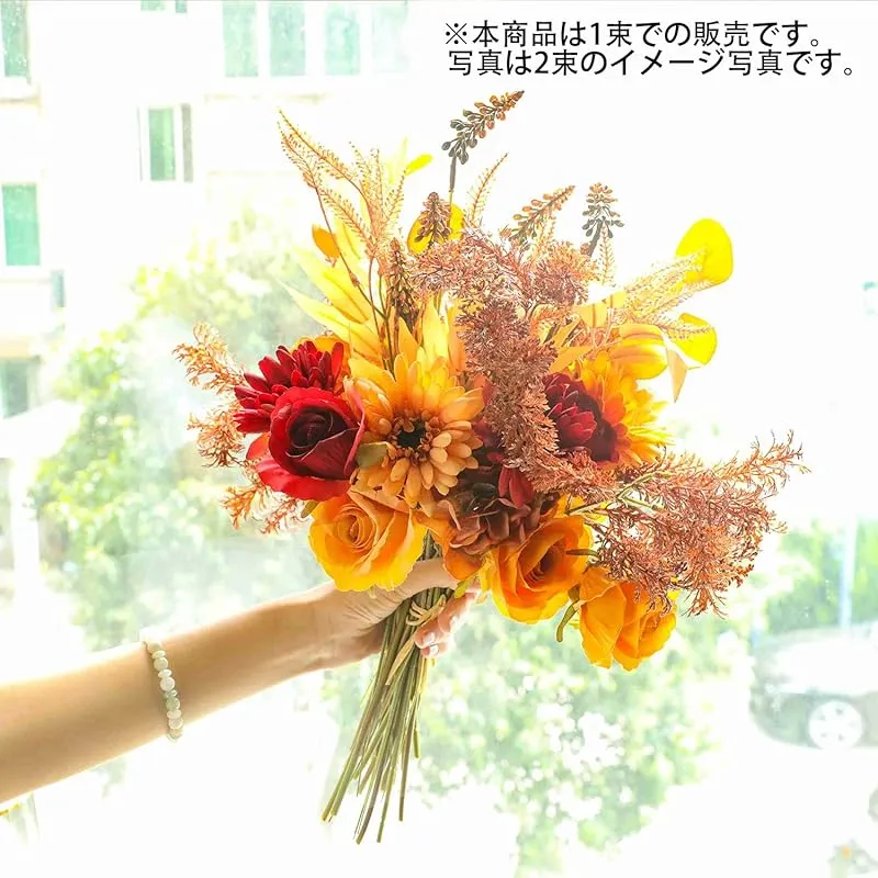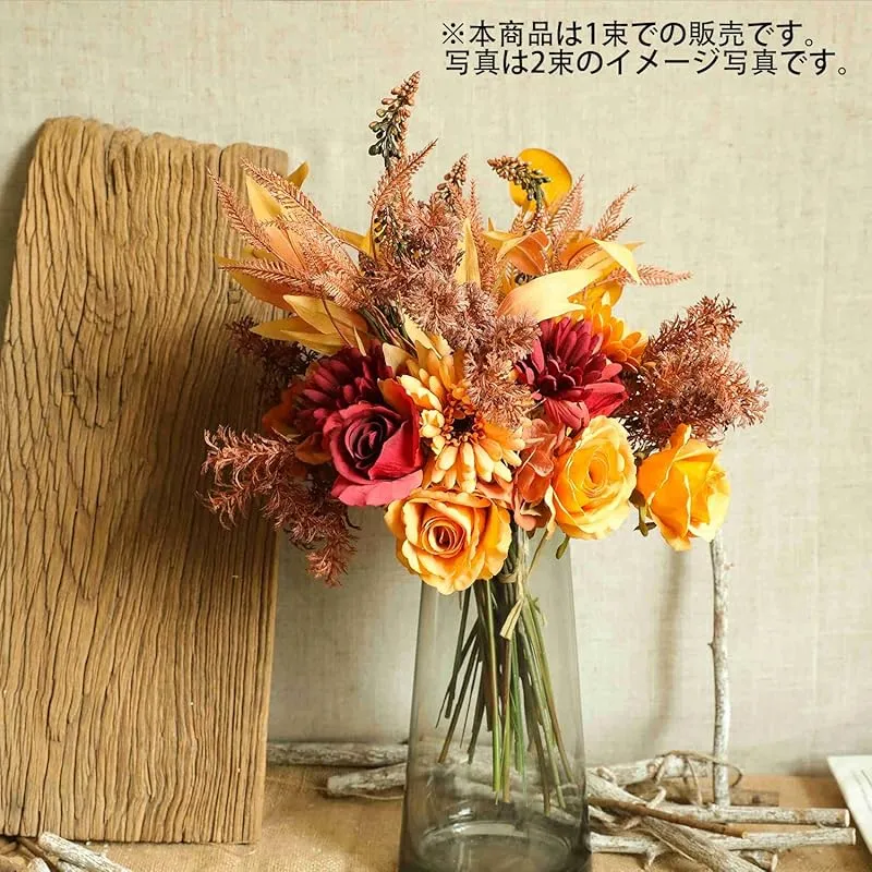【新品】 WillingYou ドライフラワー 花束 造花 ブーケ 秋の飾り フェイクフラワー インテリア ウェディング 結婚式 バラ 菊 秋 DIY 撮影 美術館 ホーム 庭園 キッチン オフィス 喫 パーティー 部屋 飾り人工植物 観賞植物 オレンジ 1束