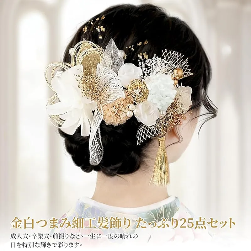 【新品】 AstraLoom 髪飾り 成人式 ヘアアクセサリー 25点セット あじさい かすみ草 造花飾り ドライフラワー 水引 和装 振袖 袴 着物 浴衣 髪飾り ヘア飾り 卒業式 成人の日 七五三 結婚式 花モチーフ 軽量 前撮り ヘッドドレス 手作り 専