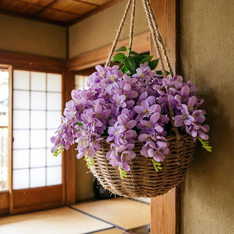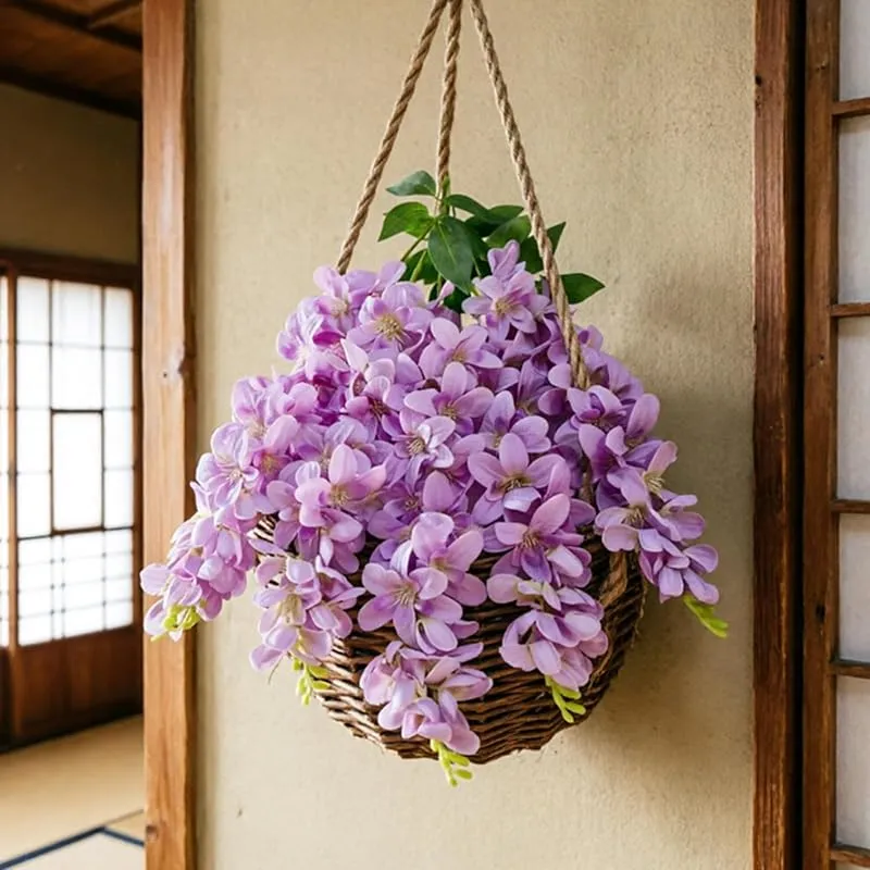 【シミュレーションデザイン】本物のフジの花を忠実に再現したデザインで、花弁や葉の質感までリアルに作られています。自然な雰囲気を演出し、インテリアの雰囲気を一気に高めます。