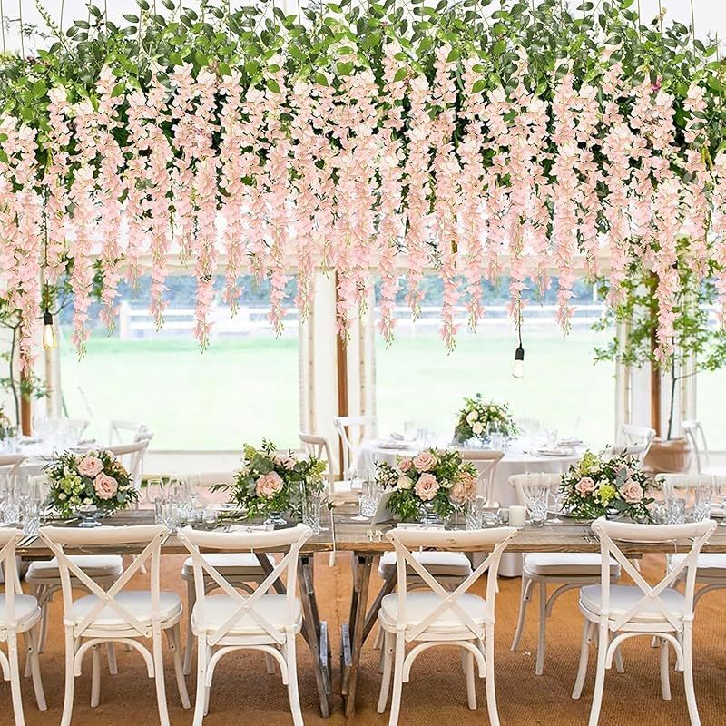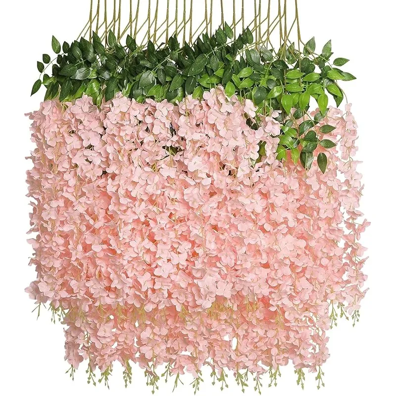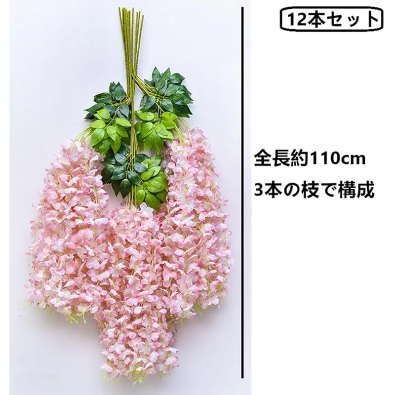 【新品】 koundeneko 藤の花 造花 12本セット 人工観葉植物 シルクフラワー つり下げ 花飾り 枯れない花 緑の葉 夏の装飾 壁装飾 ガーデン 結婚式 ウェディング パーティー飾り 庭園飾り 写真 撮影道具 フェイクフラワー 全長110cm/本(ピ