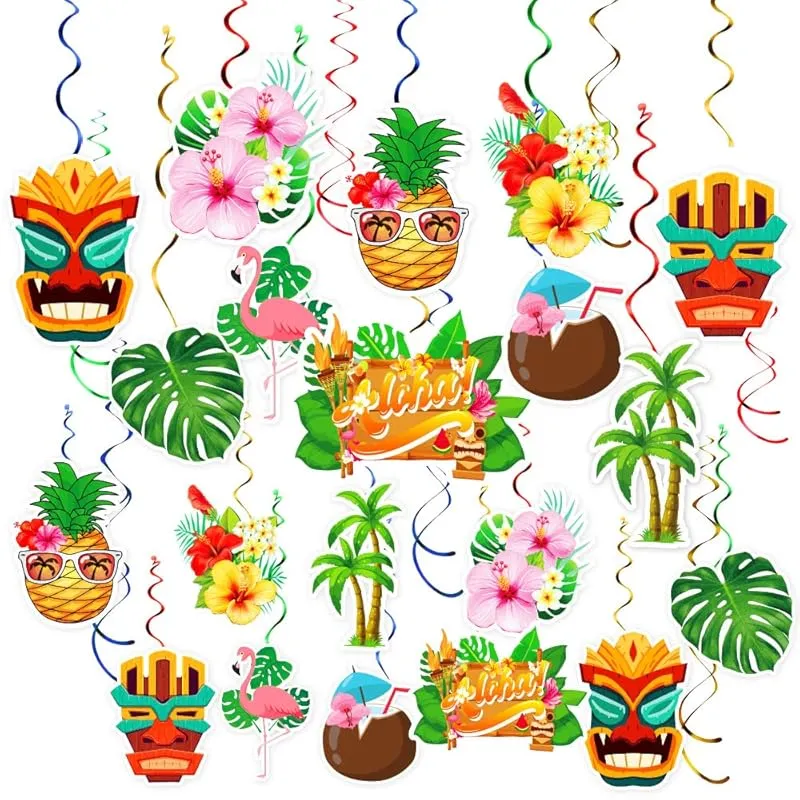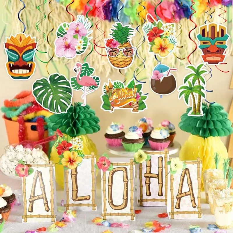 【おすすめ理由】 さまざまな柄がプリントされたカラフルなカードと、スパイラル状の吊り下げオーナメントがセットになっています。 壁に取り付けたり、天井から吊るしたりして、完璧なパーティースペースを作成できます。 他のハニカムボールやポンポンと組み合わせて楽しい空間を演出することもできます。 無毒無害な紙素材で作られており、安心してご使用いただけます。 質感が高く、傷つきにくく、適切に保管すれば再利用できます。 ハワイアンな雰囲気を漂わせるカラフルなセットは、夏らしさあふれるロマンチックな空間づくりにぴったりです。