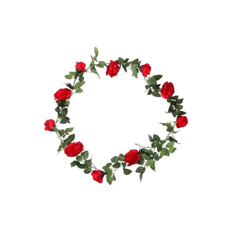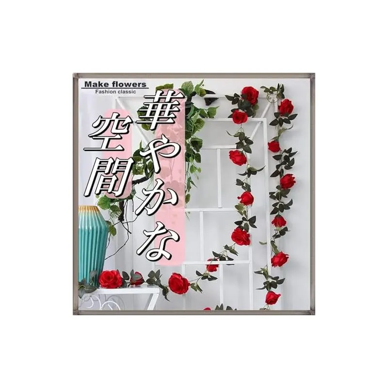 【新品】 南風社 英国風 薔薇ガーランド 選べる4色 2m バラ 装飾 飾りつけ ローズ 造花 花材 つた (赤・2本セット)