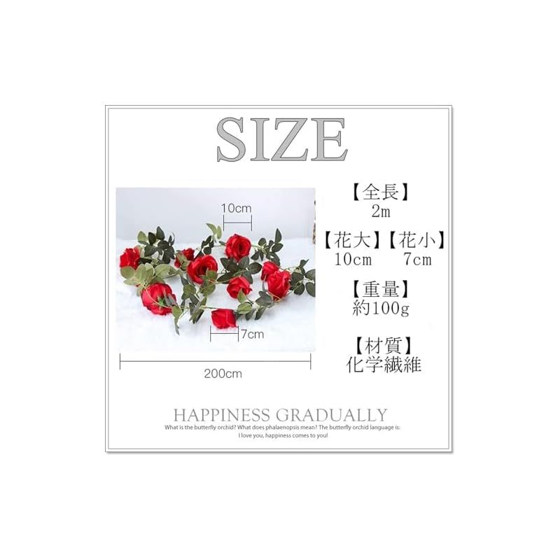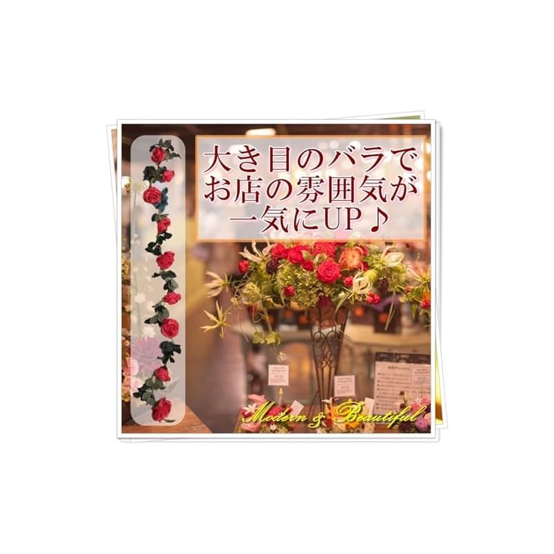 【材質】ポリエステル こだわりはバラの大きさ。10cm・7cm、2つの大きさのバラは造花ながら本物に近い仕上がりとなっています。ツタを含めた全長は約2m。 素材は化学繊維のため、軽く色あせしにくく、撥水性にも優れているのが特徴です。 お庭や玄関に飾って英国風の飾りつけに。お店の雰囲気を上品に、明るくさせる目的としてもお使いいただけます。