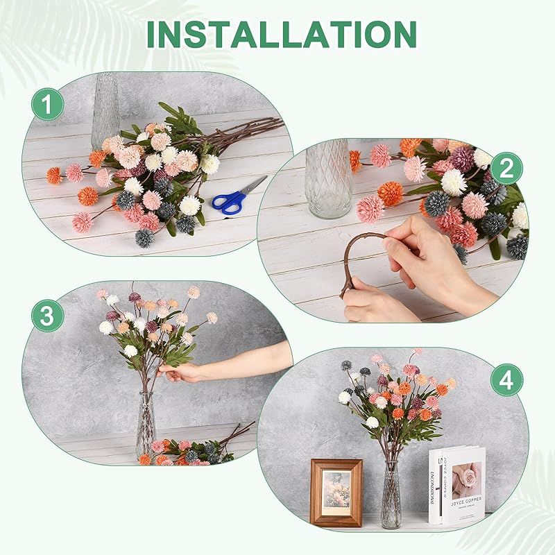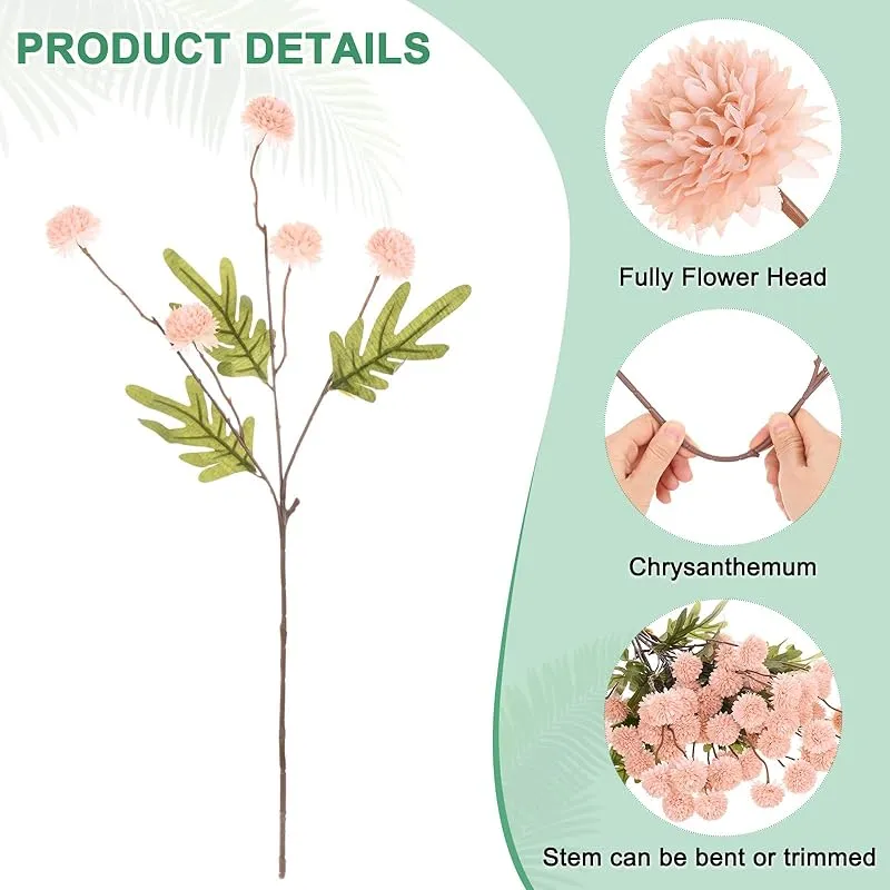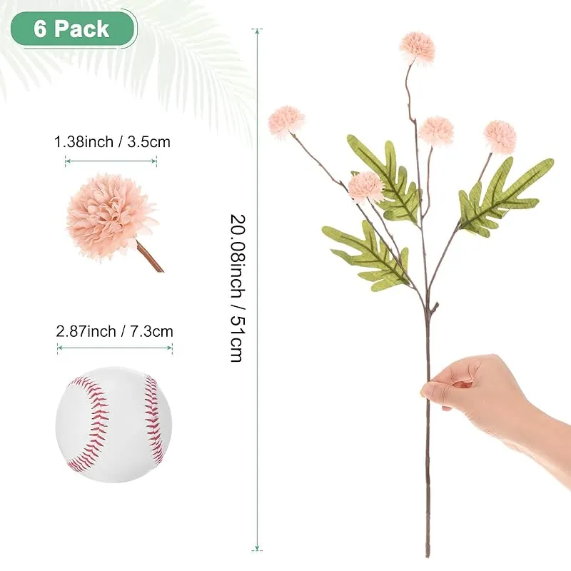 【新品】 M METERXITY 6パック 人工キクボール花 20"5本 偽 キクシルクブーケ リアルタッチ 偽 花 家庭/結婚式/クリスマス/パーティー用[ピンク]
