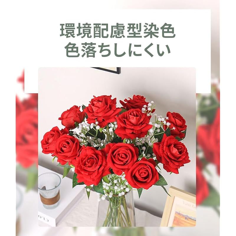 【做工が精良】精巧な製作技術は当社造花の大きな特長です。環境にやさしい染色技術は色彩の持続性をするだけでなく、品質と環境保護への追求を体現しています。色落ちしにくい特性で、日常の触れや長期の飾りでも完璧な状態を保ち、高い製作水準を見せます。