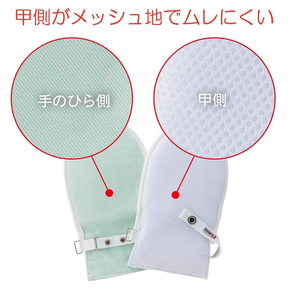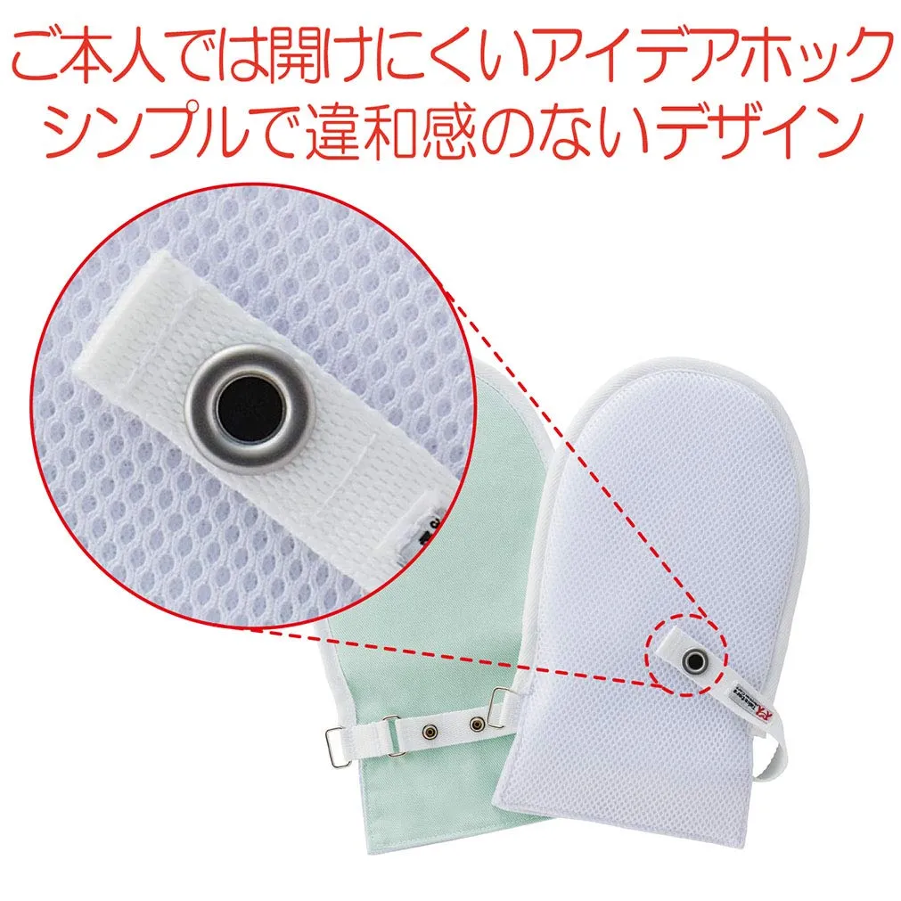 危険な行為やおむついじりに対応する、アイデアホックを採用した介護用てぶくろです。