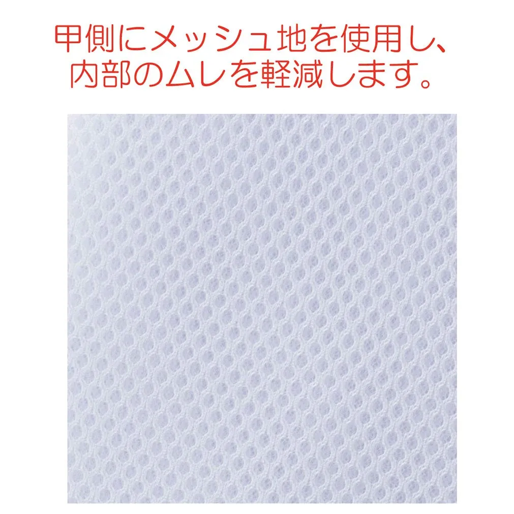 手の甲側が通気性の良いメッシュ地 面ファスナー(マジック式)により調整可能な手首ベルト
