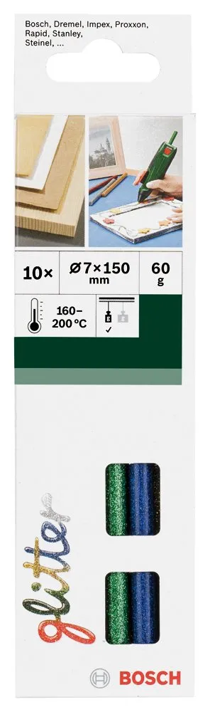 新品 BOSCH(ボッシュ) グルースティック 7mmφx 150mm (グリッター(ラメ)5色・各2本入) GS7KIR