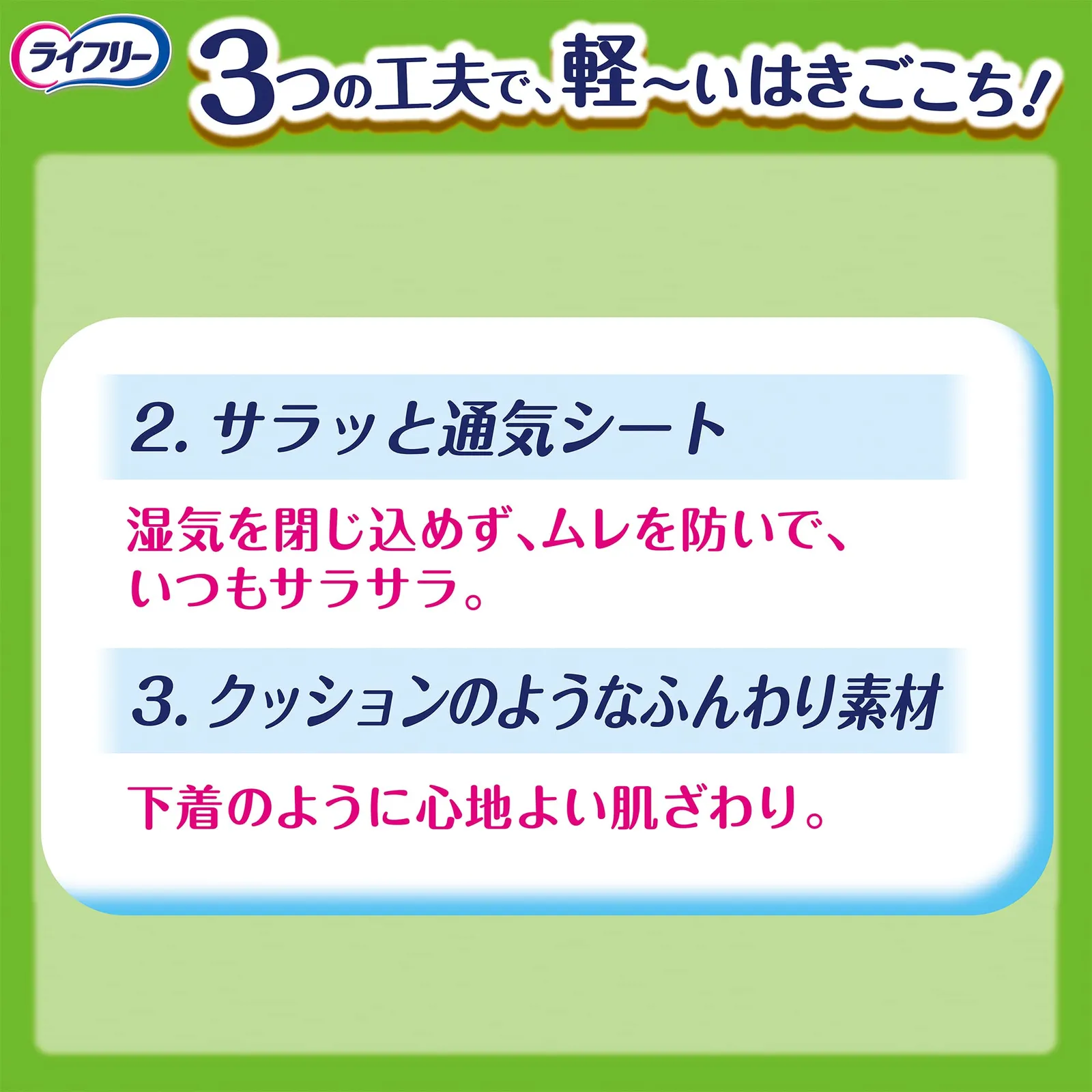 超うす吸収体が、下着のようにすっきりフィットして、軽いはきごこち。