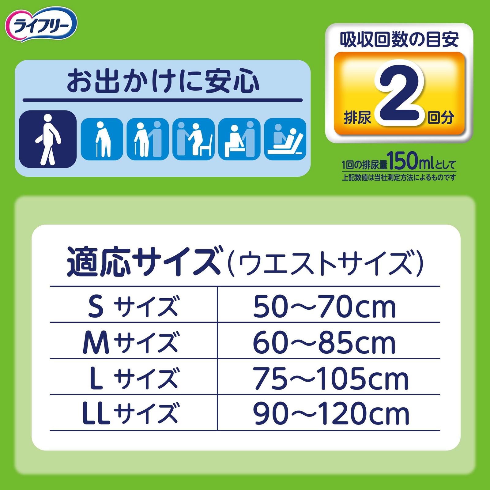 Lサイズ ウエストサイズ75?100cm 吸収回数の目安※排尿2回分 ※1回の排尿量150mlとして(当社測定方法によるものです)