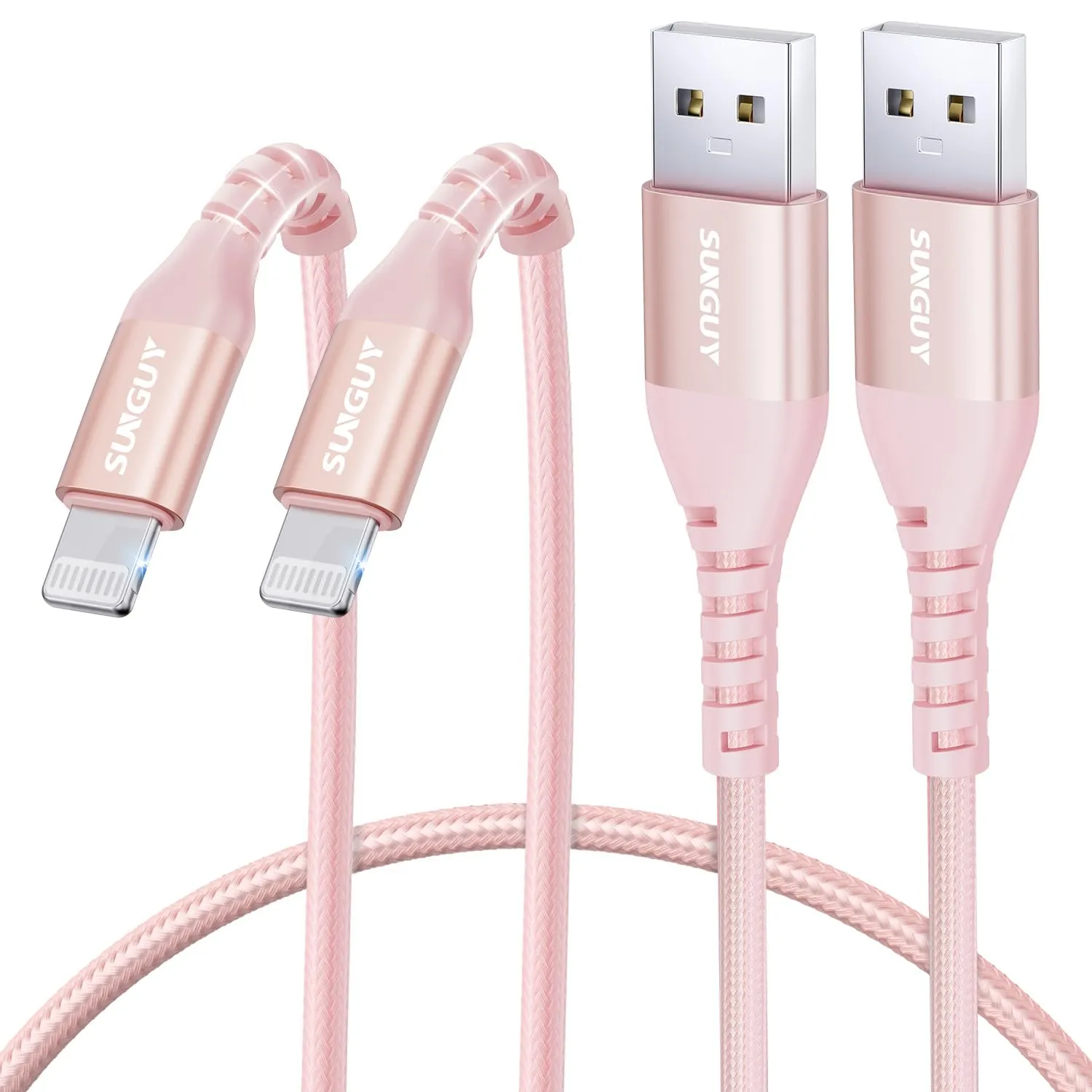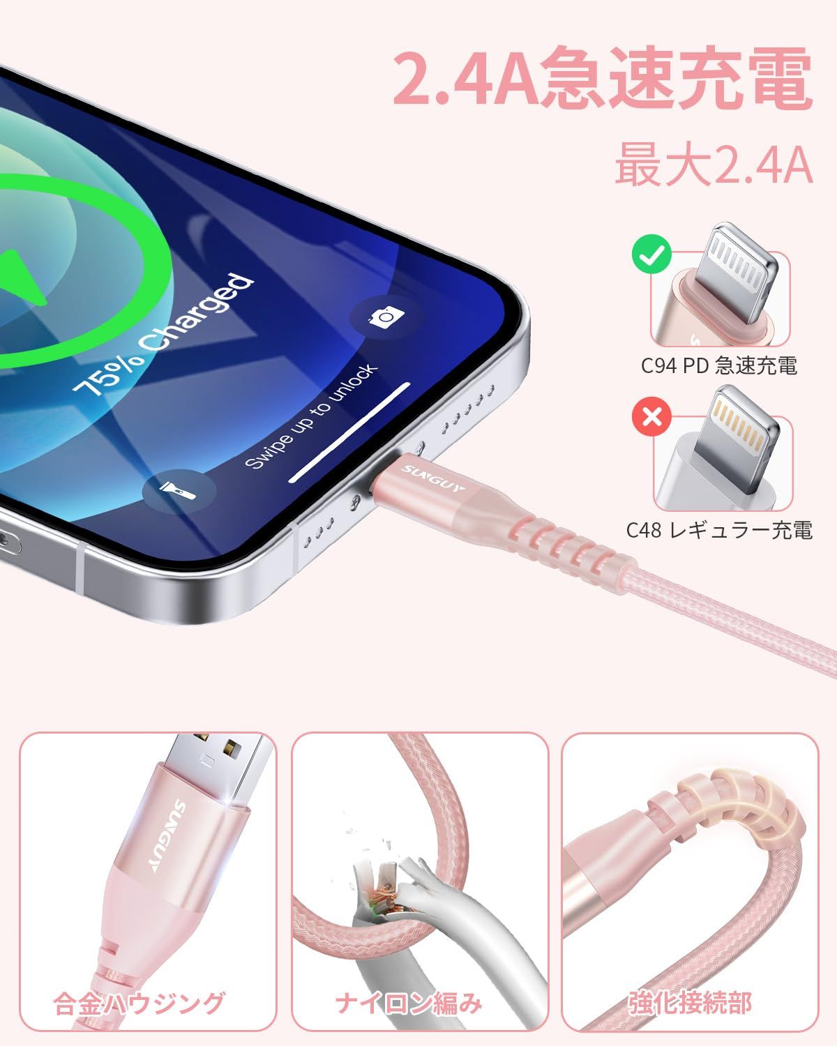 新品 SUNGUY iPhone 充電ケーブル 0.5M 2本セット ライトニングケーブル MFi認証済み ナイロン高耐久 断線防止 Lightning ケーブル 2.4A急速充電 アイフォン充電ケーブル データ転送同期 Carplay対応 充電器 コード i