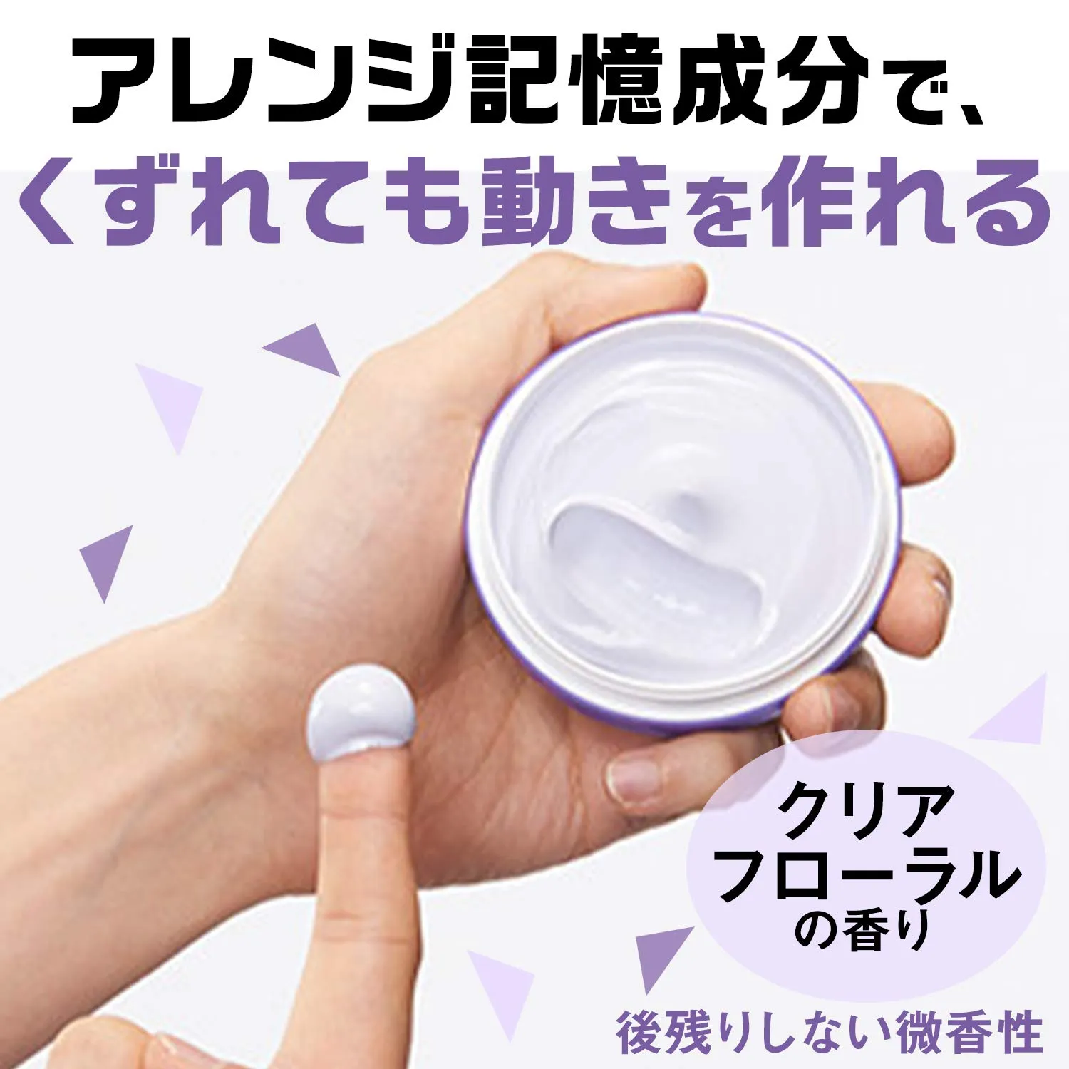 【アレンジ記憶成分『ムービングラバー』配合※1】弾力ある仕上がりで何度でも再整髪できる ○ヘアケア保湿成分配合※2 ○クリアフローラルの香り(後残りしない微香性) ※1 パンテノール、ポリクオタニウム-11 ※2 パンテノール 使用上の注意 ○頭皮に傷や湿疹等異常のあるときは使わないでください。刺激等の異常が出たら使用を中止し皮フ科医へご相談ください ○高温になるところには置かないでください◇子供の手の届かないところに置いてください 原料・成分 水、キャンデリラロウ、パルミチン酸エチルヘキシル、パラフィン、ジメチコン、ステアリン酸ソルビタン、セテス-20、マイクロクリスタリンワックス、ミネラルオイル、ポリオキシプロピレンソルビット、ステアリン酸、ステアリルアルコール、TEA、カルボマー、パンテノール、ポリクオタニウム-11、フェノキシエタノール、香料、赤227、青1 使用方法 ○少量を指に取り手のひらで十分に伸ばしてから毛先や髪全体の動きをつけたい部分になじませてください ○使用後はかならずキャップをしめてください 原材料・成分 水、キャンデリラロウ、パルミチン酸エチルヘキシル、パラフィン、シクロペンタシロキサン、ミネラルオイル、マイクロクリスタリンワックス、セテス-20、ステアリン酸ソルビタン、ポリオキシプロピレンソルビット、ステアリン酸、ステアリルアルコール、カプリリルグリコール、TEA、ジメチコン、カルボマー、パンテノール、ポリクオタニウム-11、香料、赤227、青1 原産国:日本 内容量:80gx2個 ヘアケア保湿成分配合 クリアフローラルの香り 後残りのない微香性 最後までご確認頂き誠にありがとうございました。 上記をご確認頂き、ご購入いただけましたら幸いです。 何かご不明な点がございましたらお気軽にメッセージからお問い合わせ下さい。