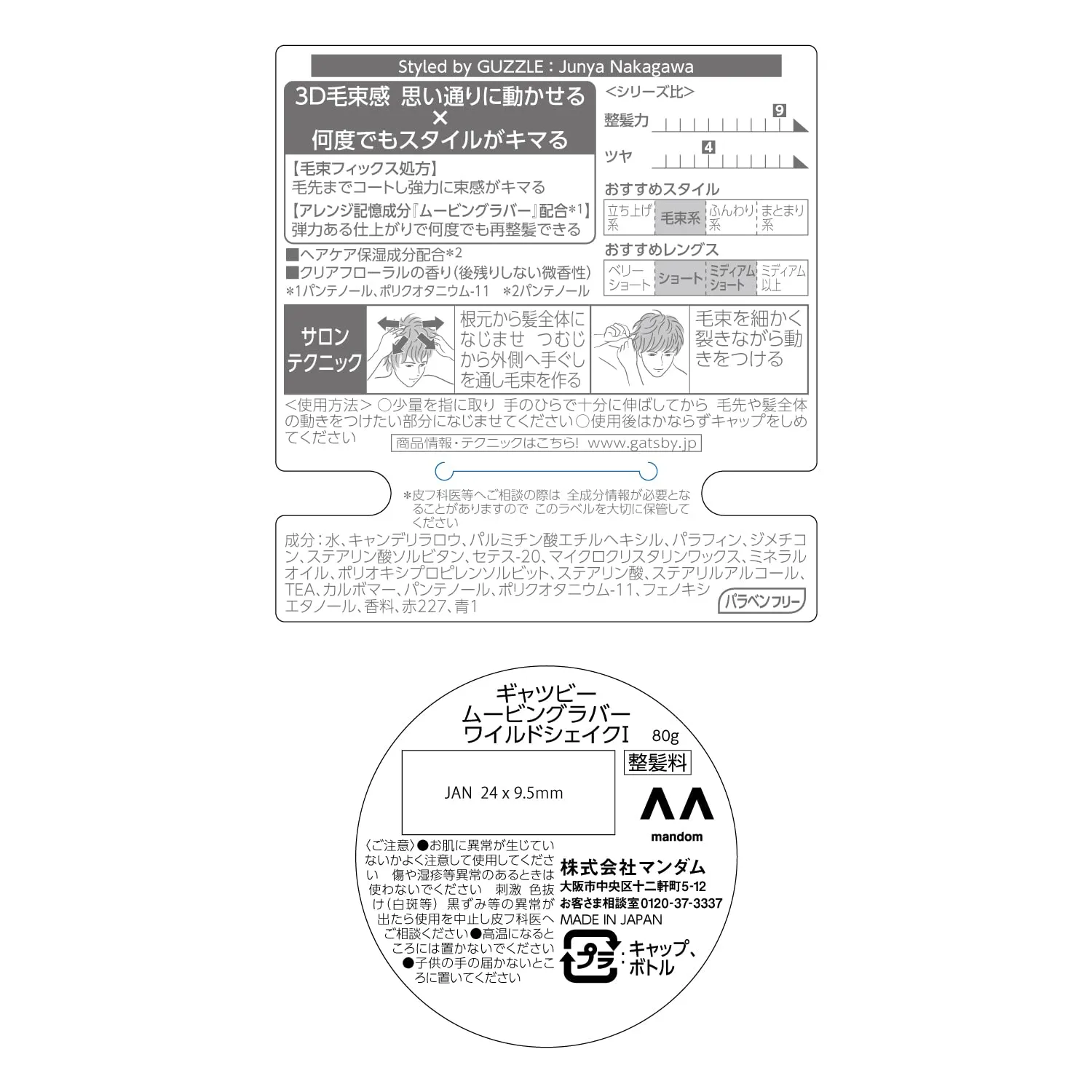 新品 GATSBY(ギャツビー) 【まとめ買い】 ムービングラバー ワイルドシェイク 80g 2個パック 〇メンズ ワックス ヘアワックス 整髪料