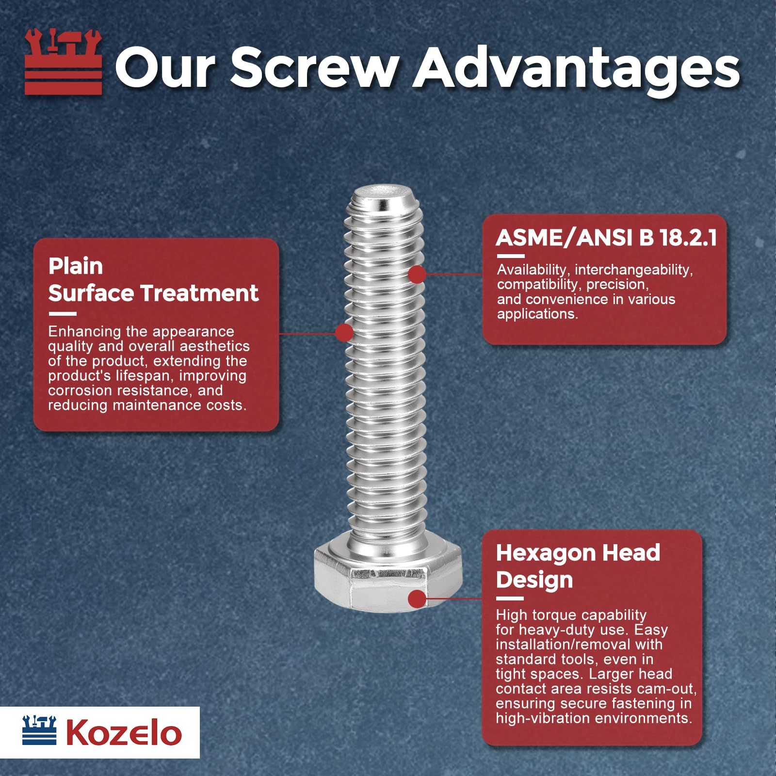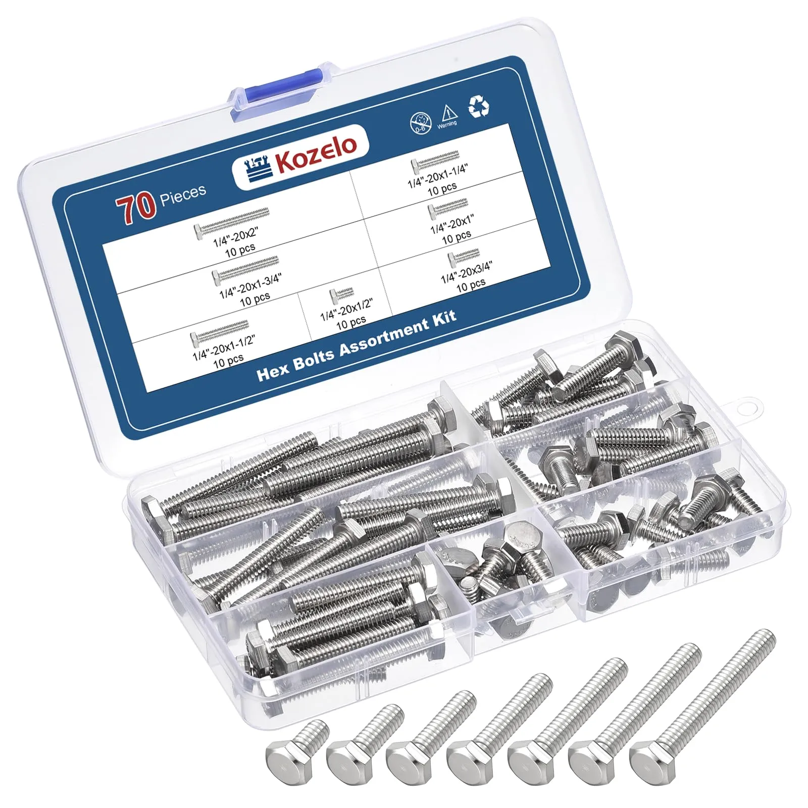 新品 Kozelo 70個 六角ボルト - [1/4-20] ステンレススチール シルバートーン