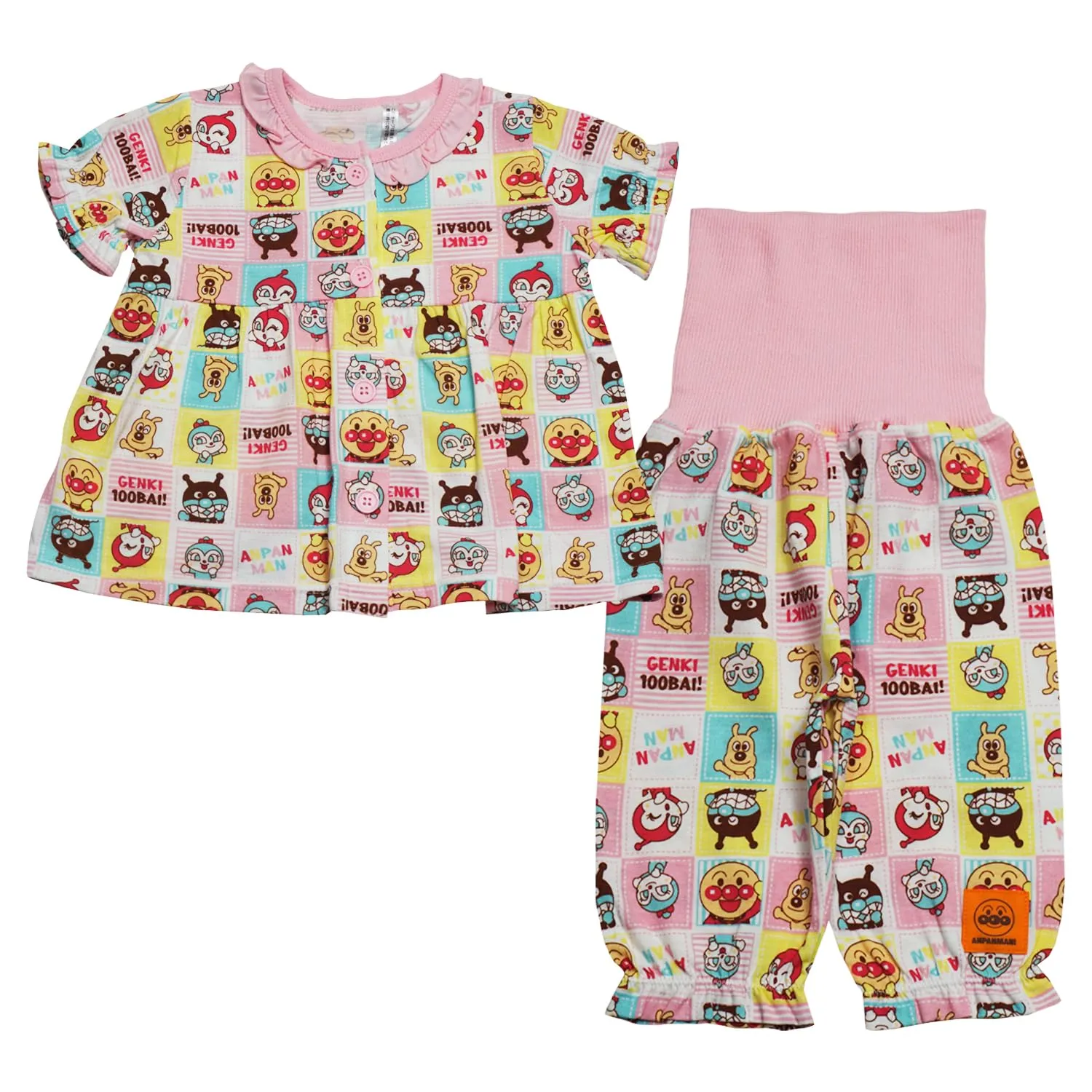 新品 [バンダイ] 【本体綿100%】2026年 夏物 アンパンマン 天竺 総柄前開き 半袖パジャマ Anpanman ピンク◇95cm