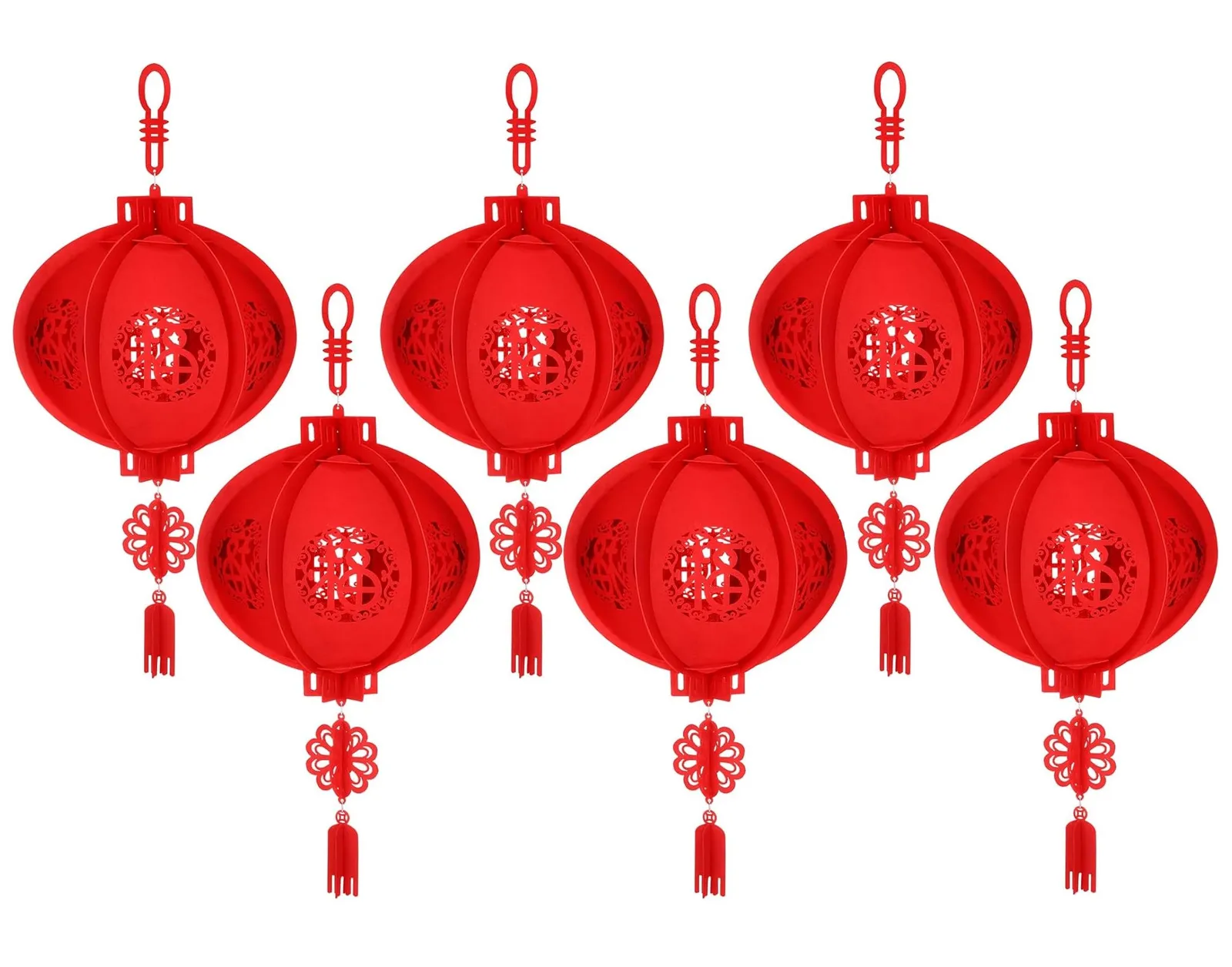 新品 siawadeky 中華 提灯 6個セット 赤 福 飾り ちょうちん 不織布製 中国風 お掛物 お祝い 幸運吉祥 開運招福 商売繁盛 雰囲気 ラッキー飾り 吊りランタン お祭り 新年 春節 正月飾り お盆 燈籠 縁起のいい 直径30cm