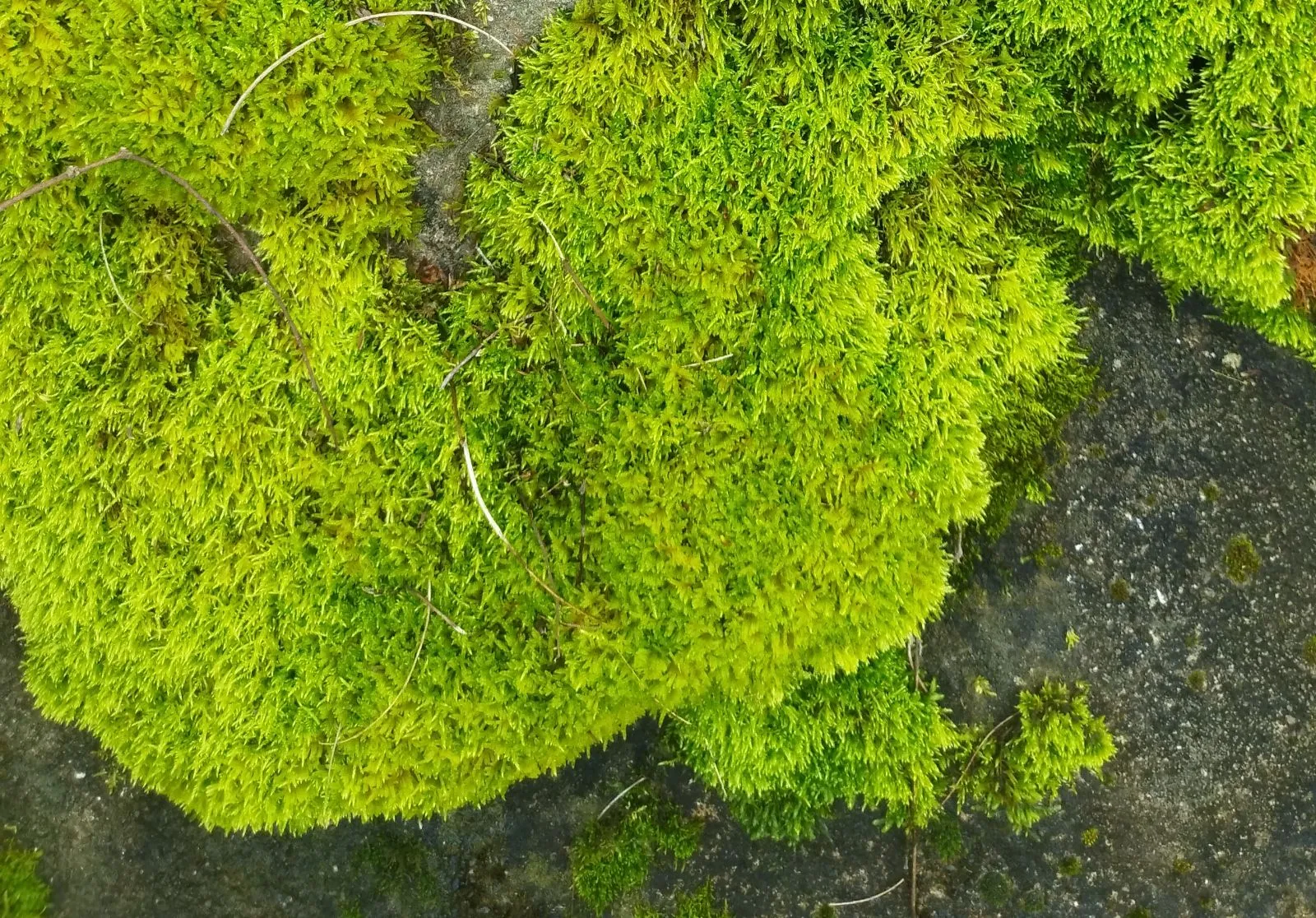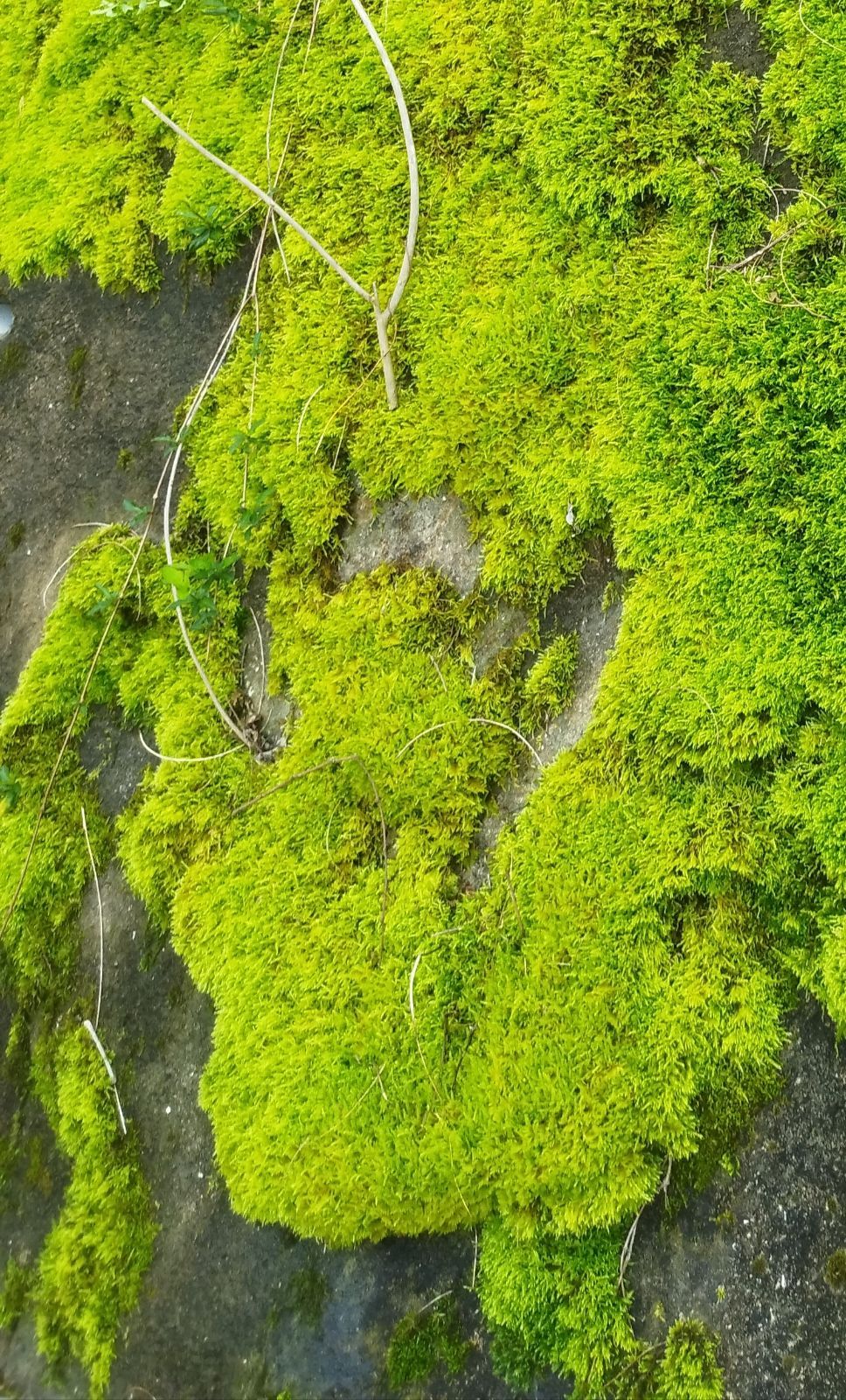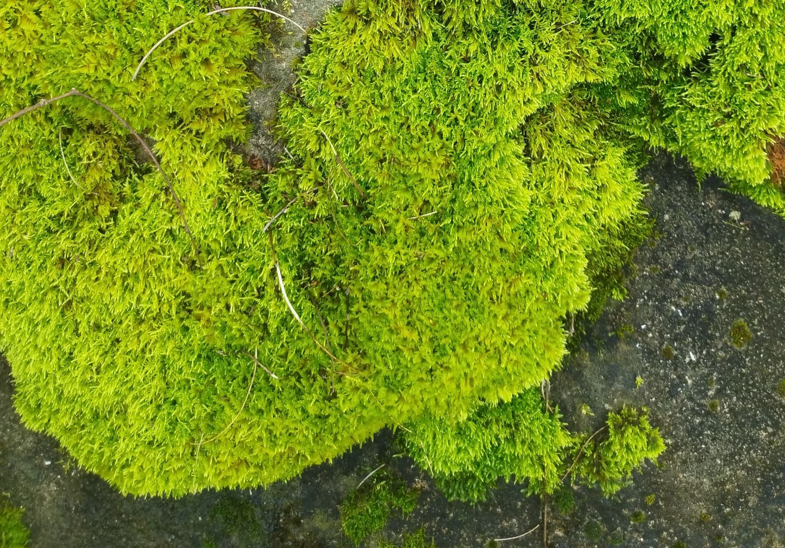 ★半日陰のハイゴケは、日が当たりすぎると葉が曲がり黄緑色になります。
