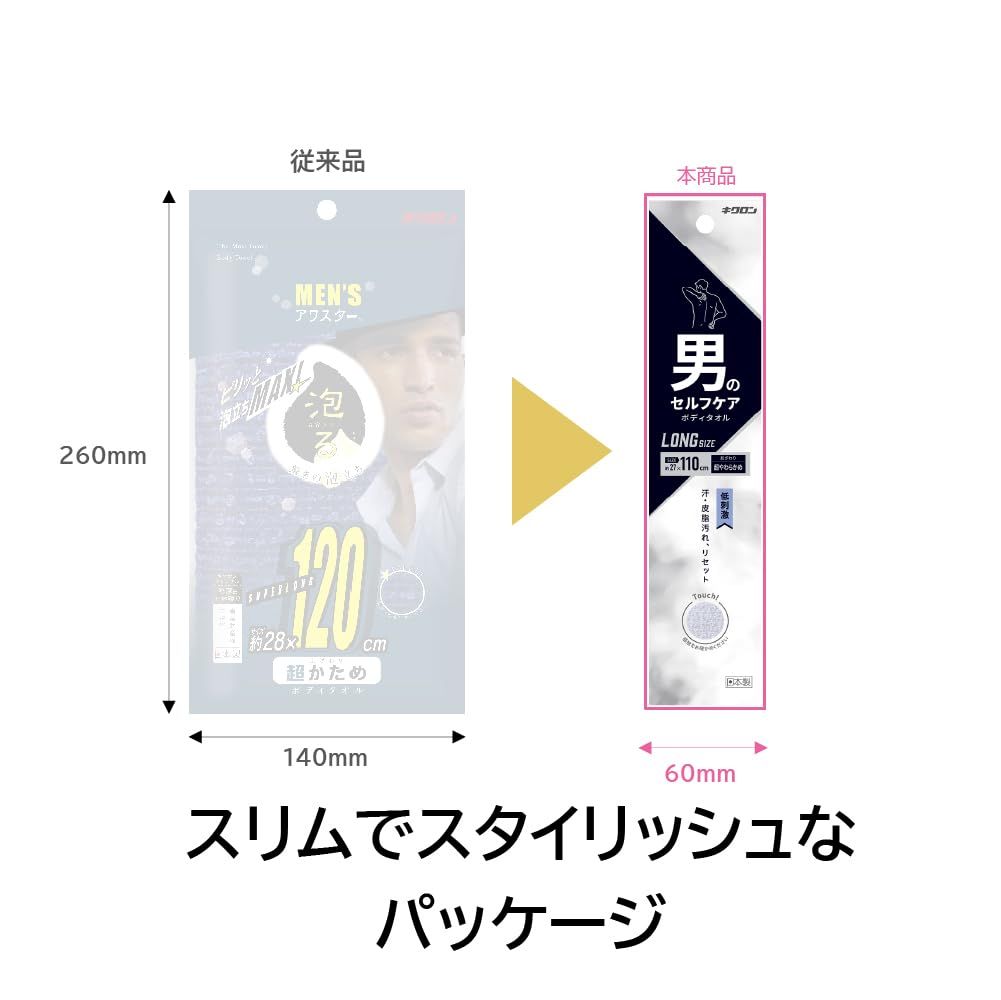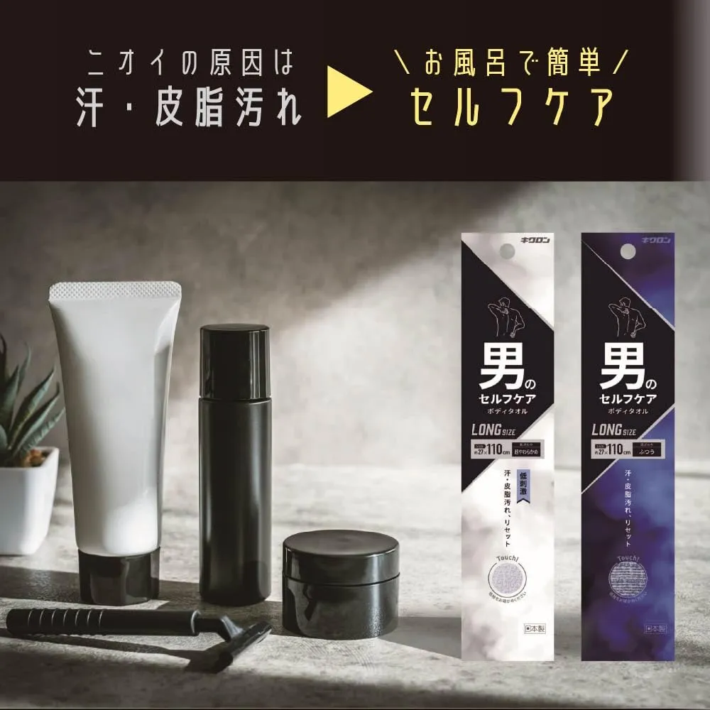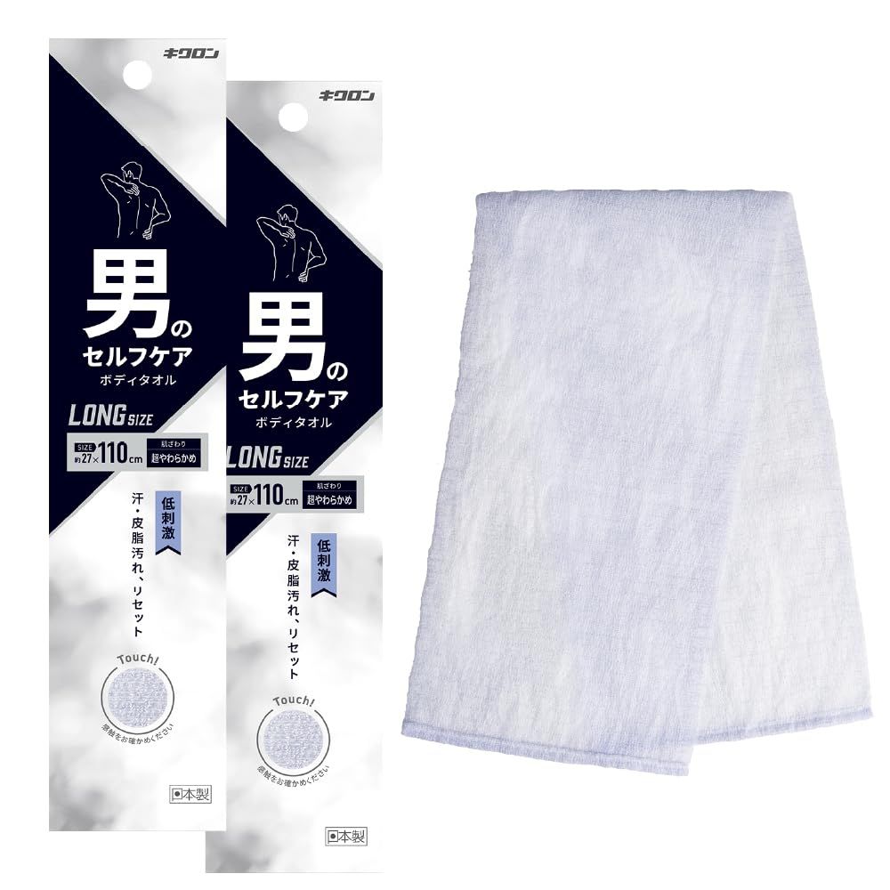 新品 キクロン ボディタオル メンズ 超やわらかめ 2枚セット 27cm×110cm 素早く泡立つ ロングサイズ 日本製 男のセルフケア