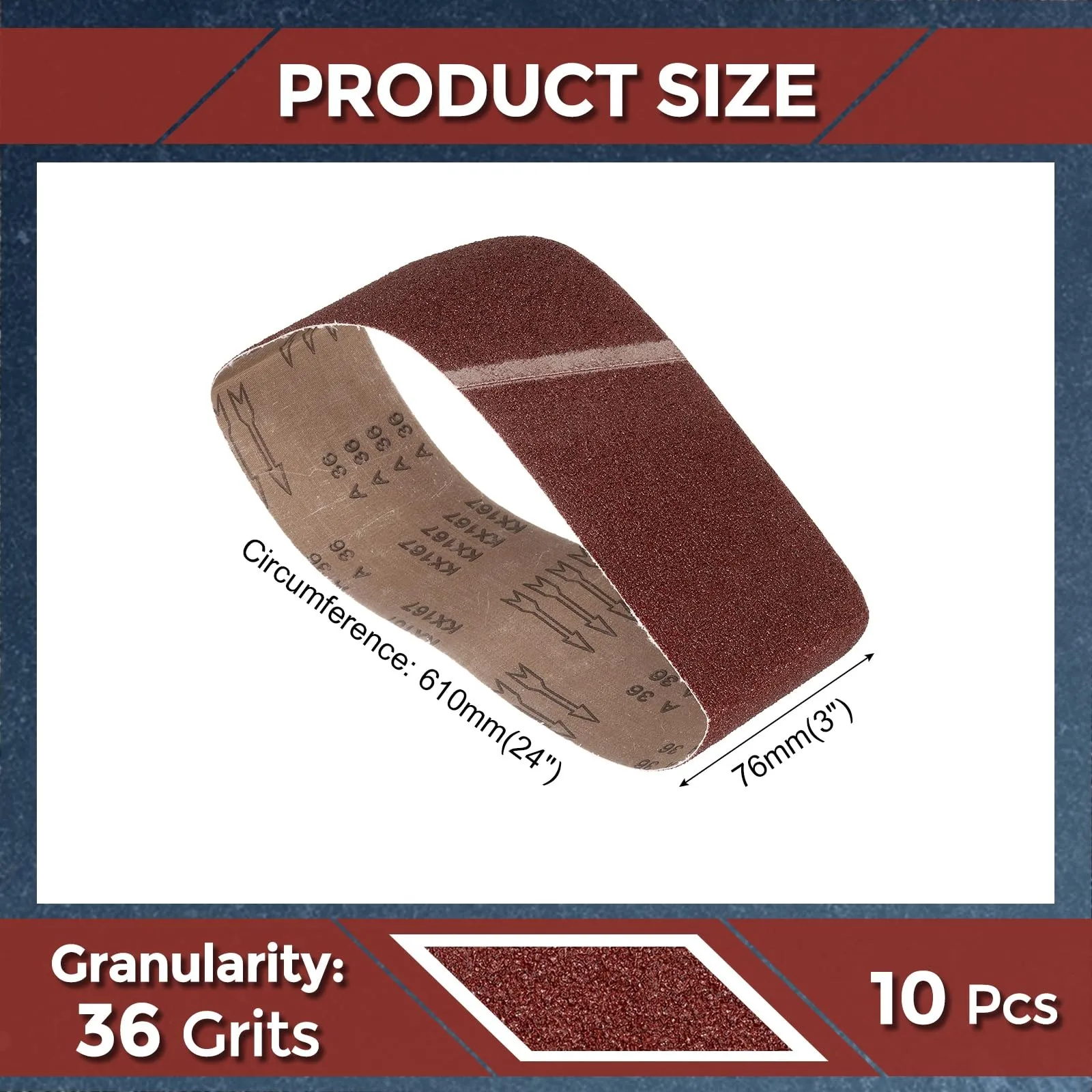 【製品詳細】サイズ:13 mm x 457mm;粒度:60/80/120/180/240(各10本入);素材: 酸化アルミニウム;パッケージ内容:ベルトサンダー替えベルト50本。