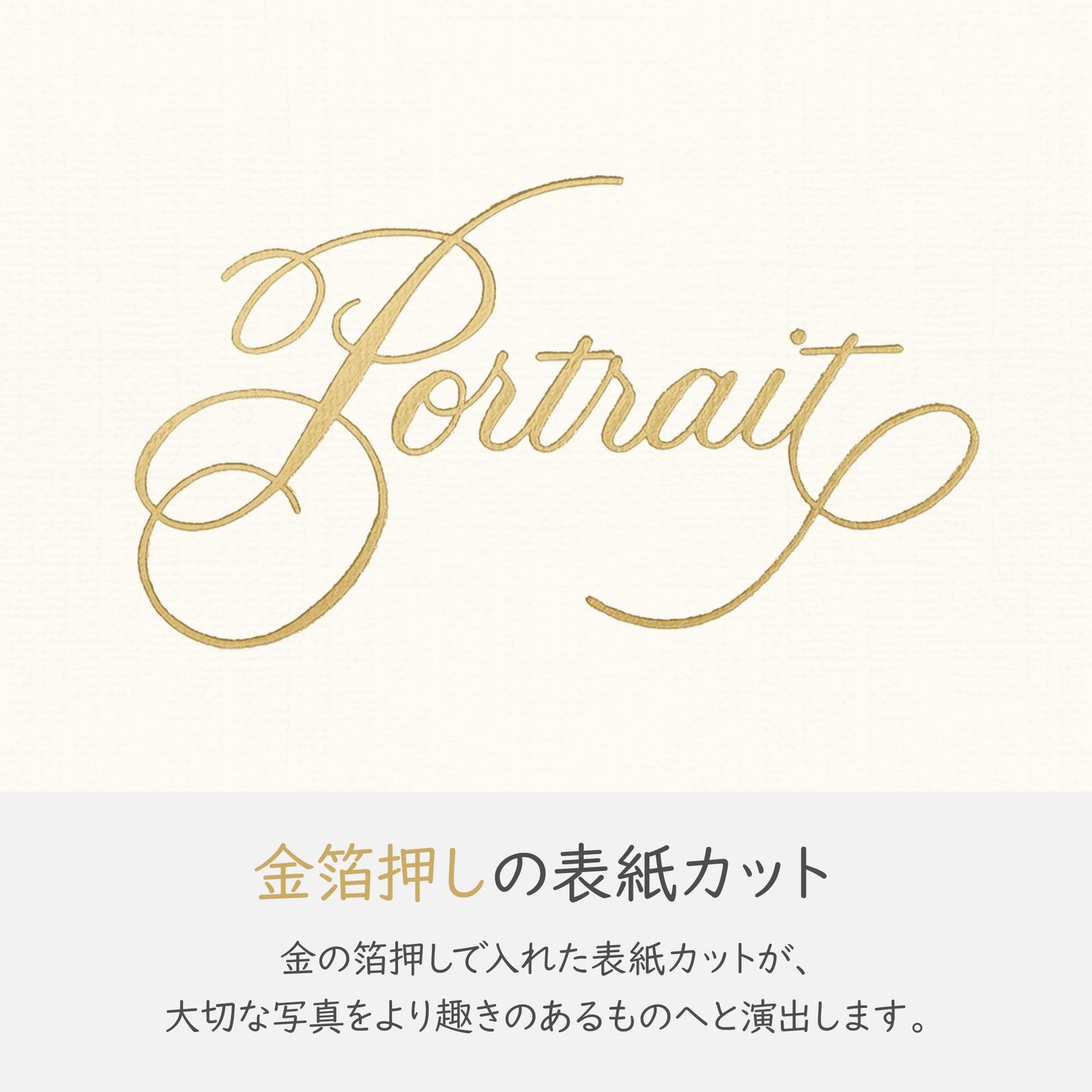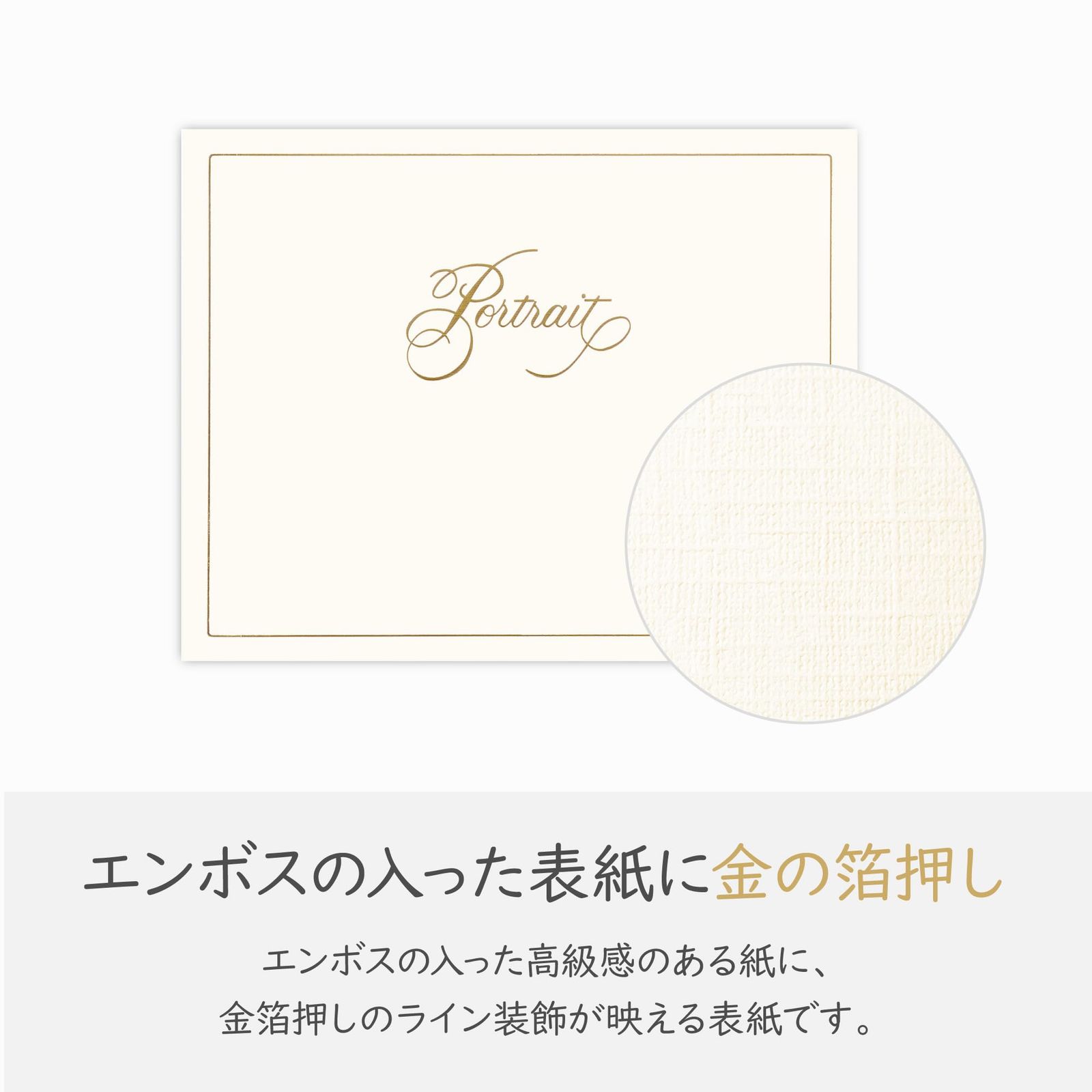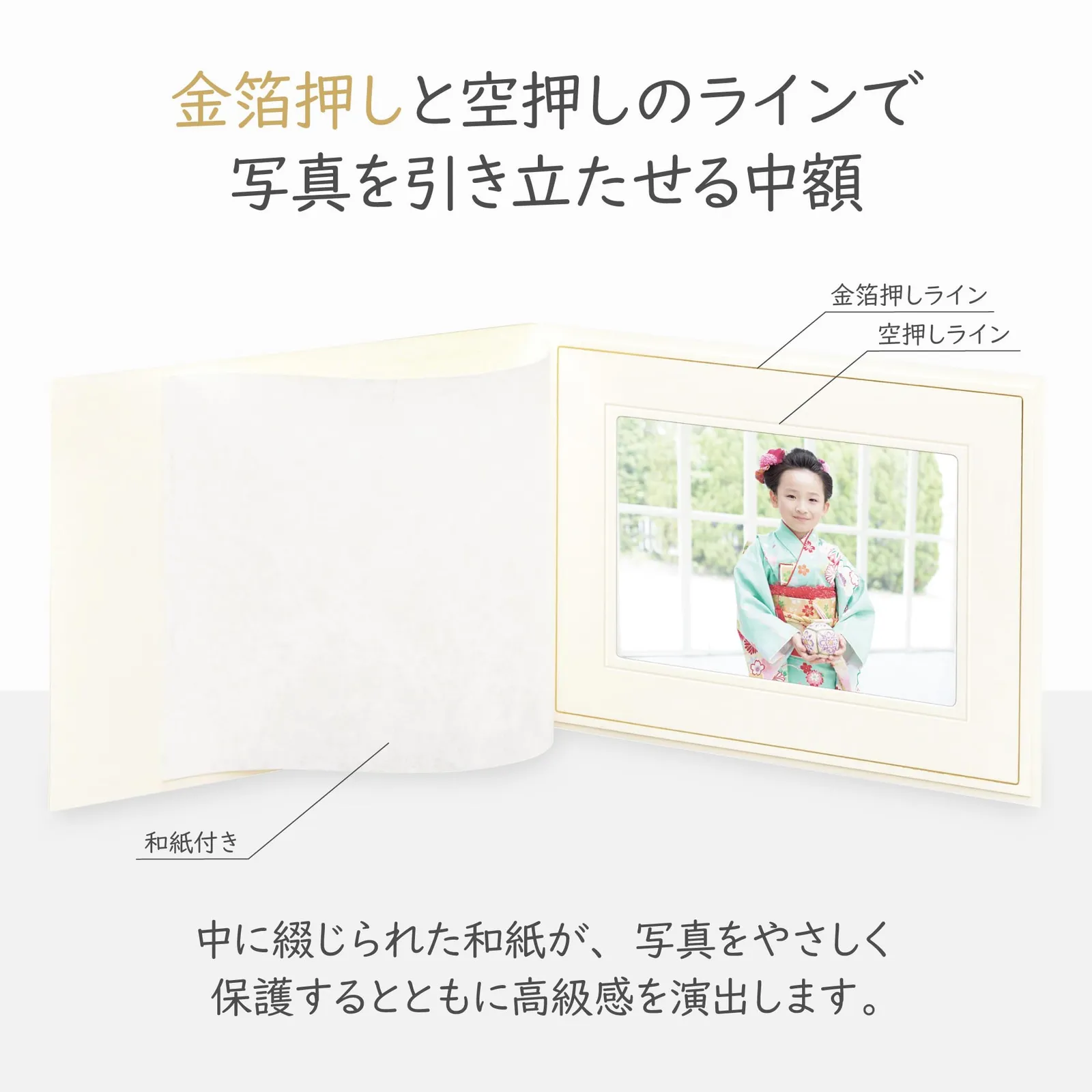 中額には空押しのラインと金箔押しのラインで装飾を施しており、写真をぐっと引き立たせます。