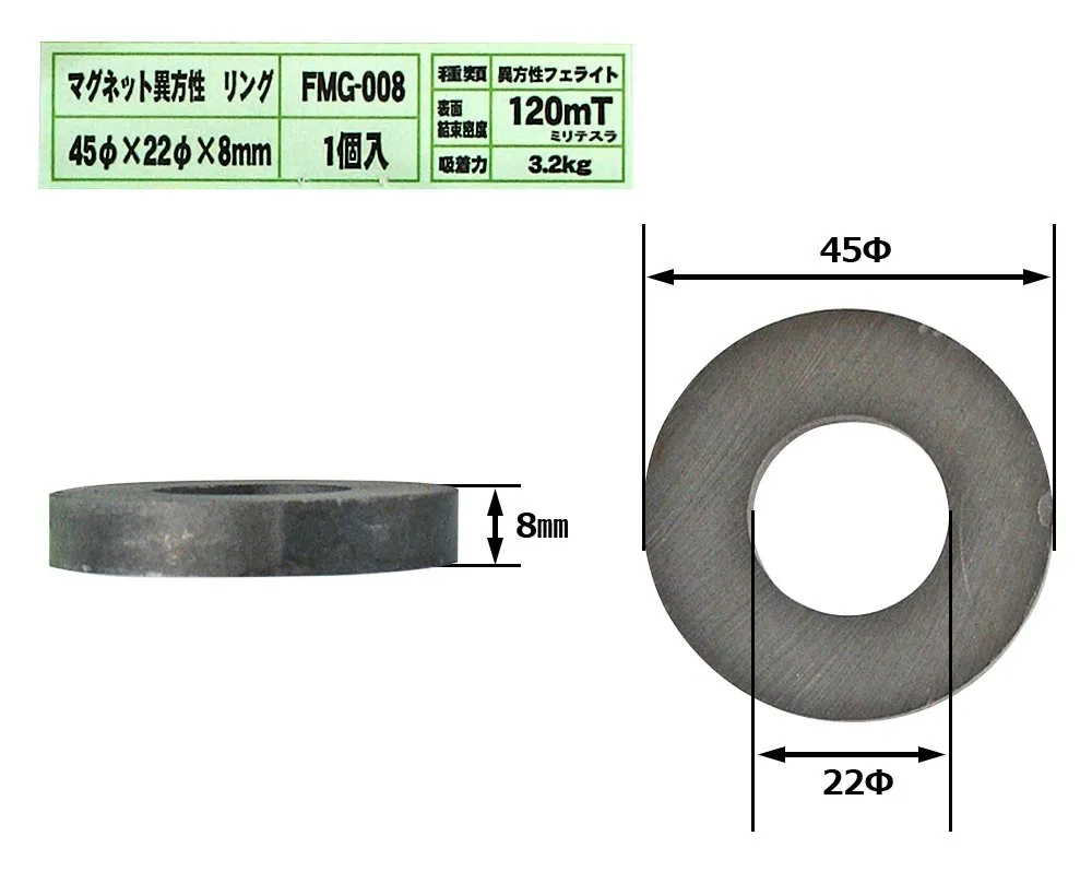新品 和気産業 マグネット異方性 リング 45φ×22φ×8mm 補強 取付 固定 FMG-008