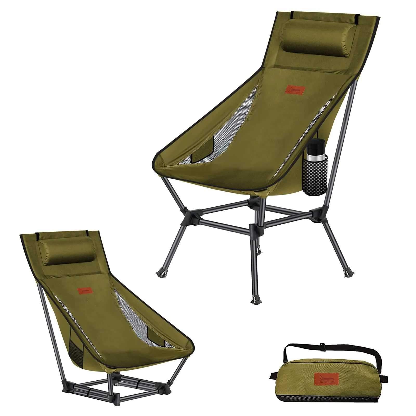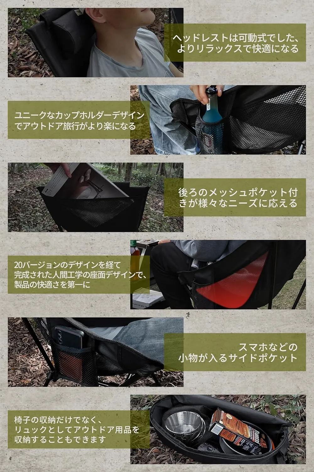 新品 DesertFox アウトドアチェア 2WAY キャンプ椅子 ローチェア 軽量 枕付き ハイバック 単品/セット【独自開発のカップホルダー】 耐荷重150kg コンパクト イス ロータイプ 収納袋付属 携帯便利 STG0098 (グリーン,1)