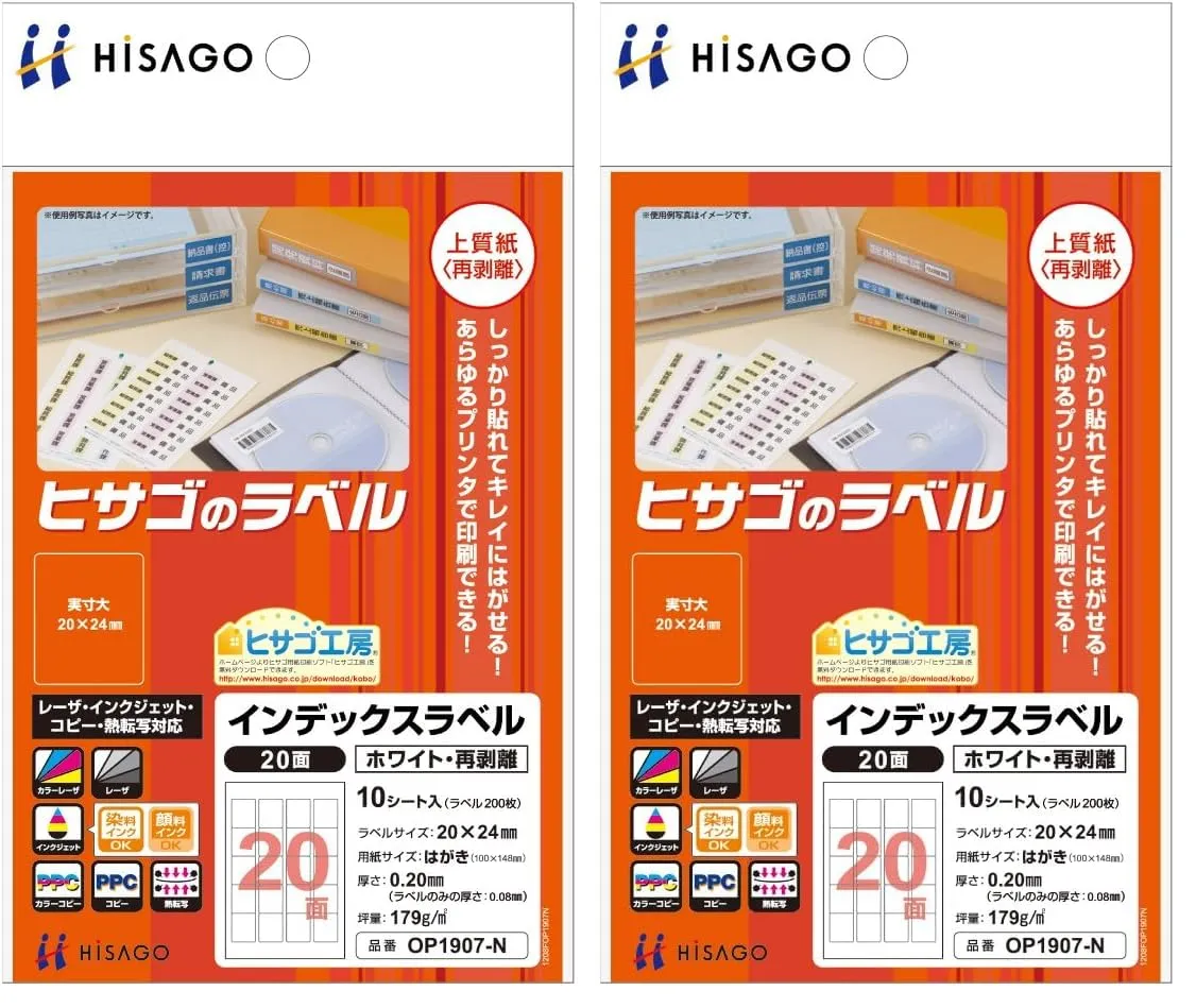 新品 ヒサゴ インデックスタック20白再剥離 OP1907-N (× 2)