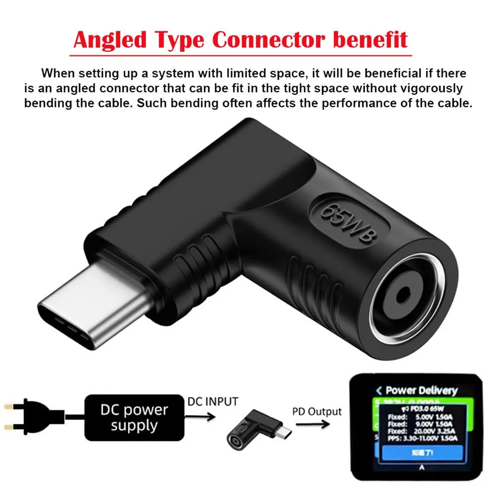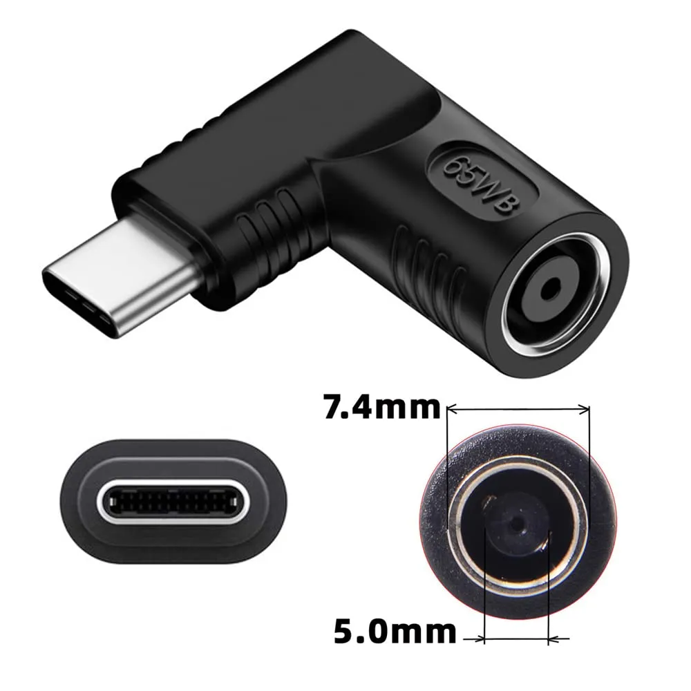 新品 NFHK DCジャック7.4x5.0mm入力→USB-C Type-C角度90度電源プラグ充電アダプター(ノートPCスマホ用