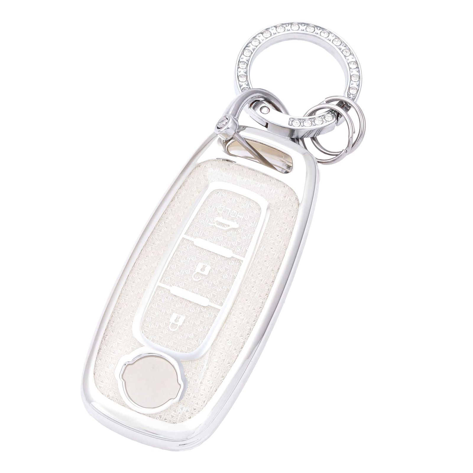 新品 [YANMW] アリア キーケース 適合日産新型 エクストレイルキーカバーサクラB6系スマートキーケースセレナC28系キーホルダー 可愛 シルバーホワイト