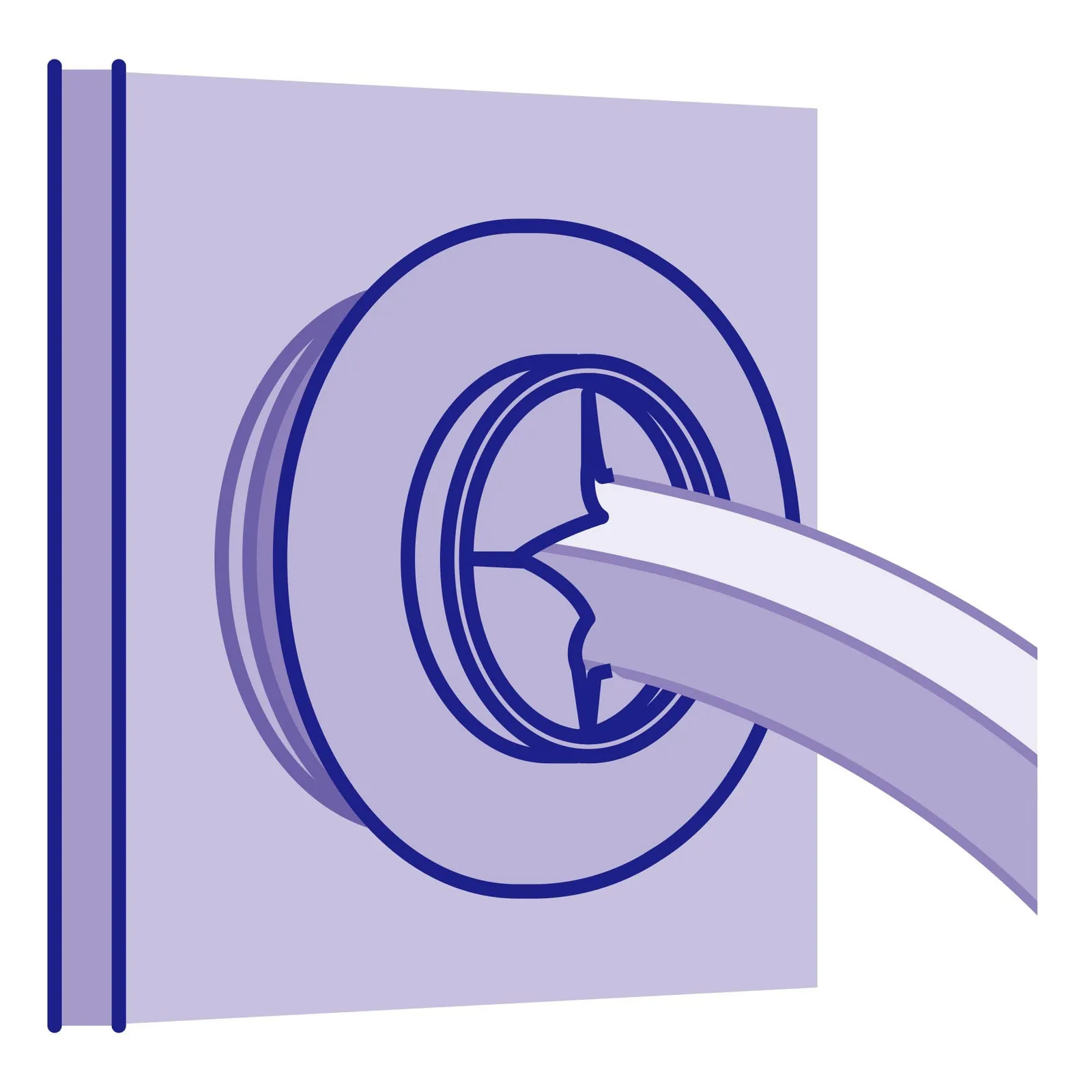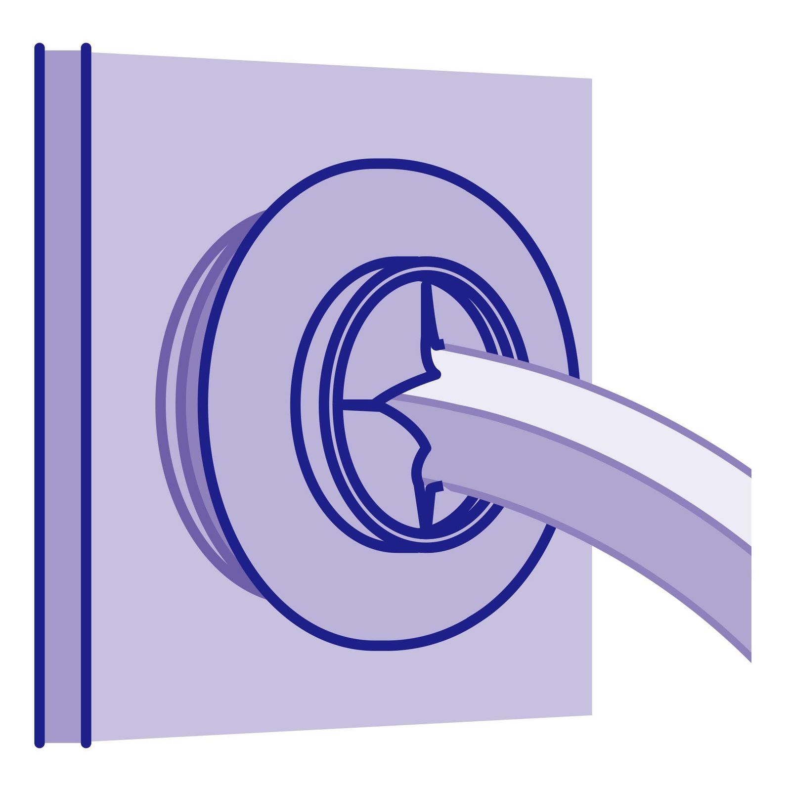 板に開けた丸穴の断面図にはめ込み、配線を摩耗や損傷から保護します。