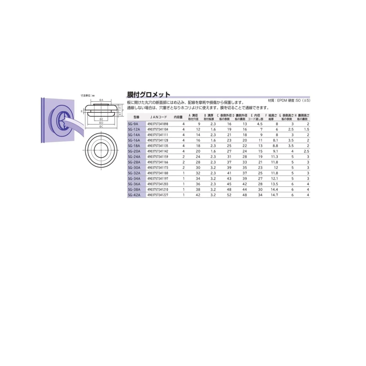 新品 和気産業(Waki Sangyo) 膜付きグロメット EPDM ゴム 配線 ケーブル 保護 RoHs適合 日本製 耐候性 SG-36A 1個入