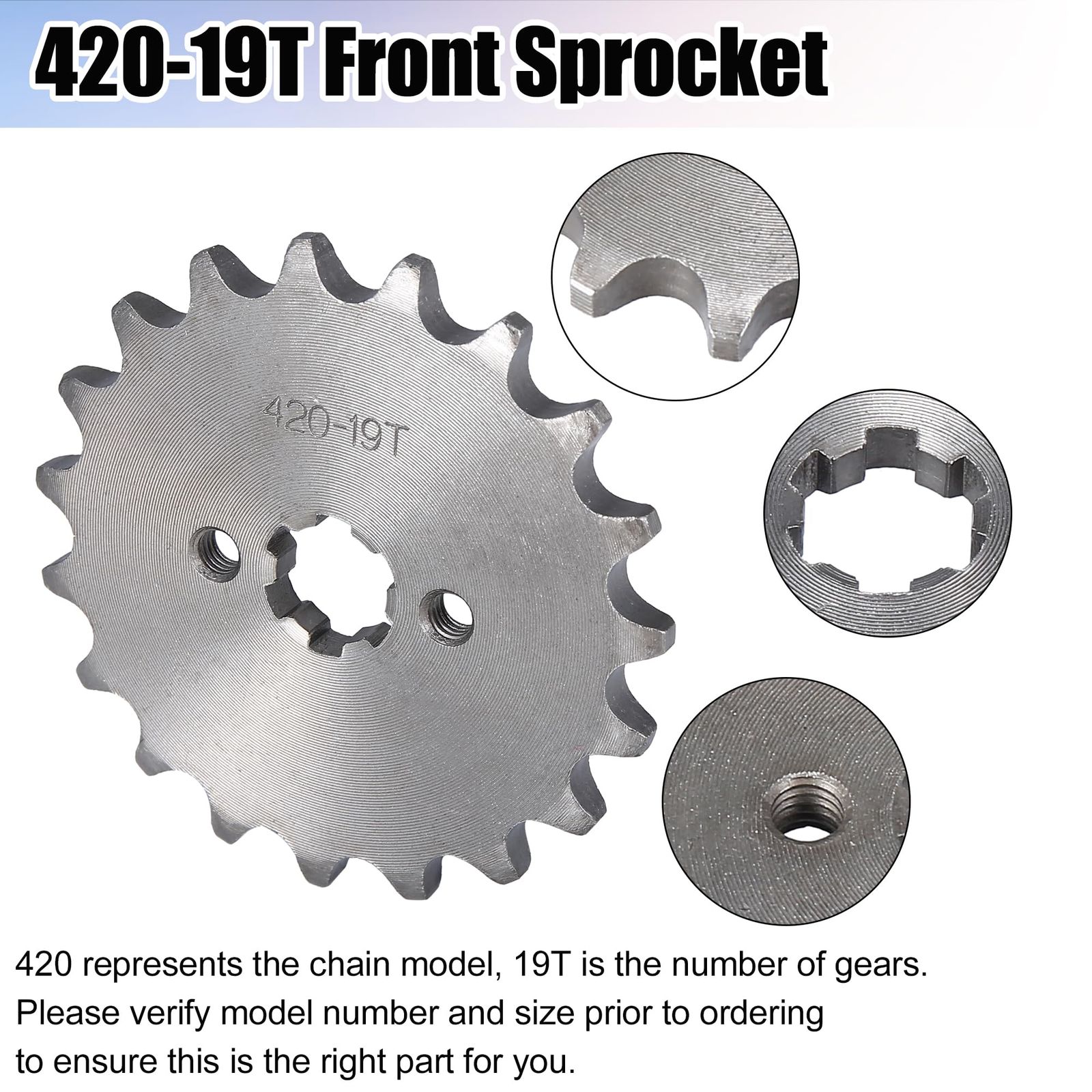 注:420はチェーンモデル、19Tはギア数、17 mmは取付穴のサイズです。ご注文の前にモデル番号とサイズを確認して、これがお客様に適した部品であることを確認してください。