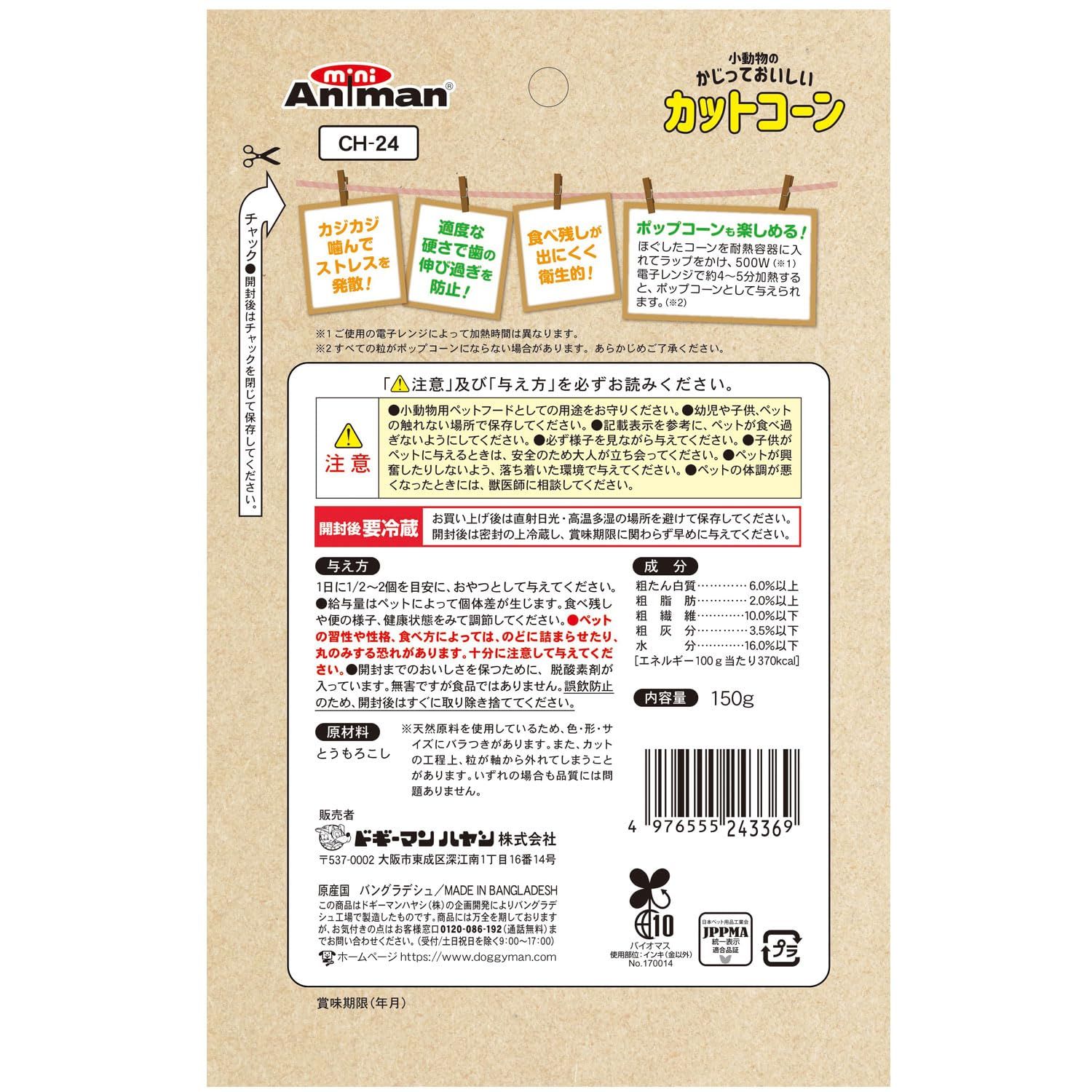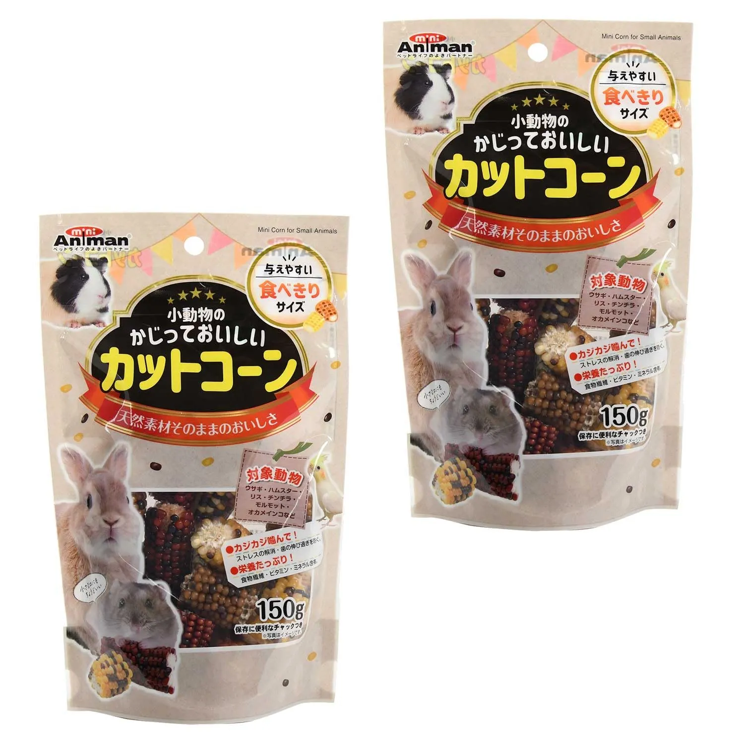 新品 ミニアニマン 小動物のかじっておいしい カットコーン 150g×2袋セット ウサギ・ハムスター・リス・チンチラ用おやつ