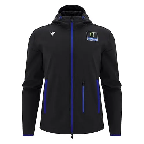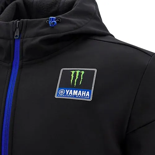 【商品説明】 水に強いソフトシェル防水生地でドローストリング付きのフードとジッパー付きのサイドポケットが特徴です。 左胸にMonster Energy Yamaha MotoGPのロゴがあしらわれています。